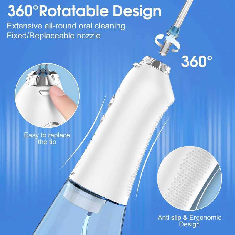 H2ofloss Professional Cordless IPX7 Waterproof 300ml USB Teeth Irrigator Home Travel Water Dental