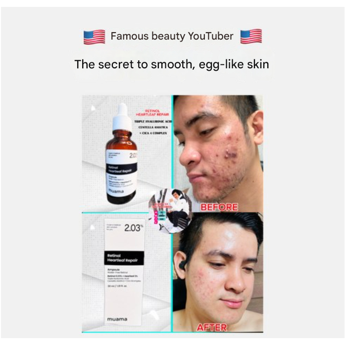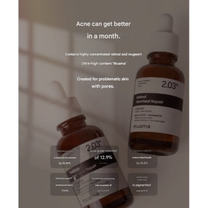 MuaMa High-Potency Retinol Houttuynia Ampoule – Acne Calming & Pore Refining (30ml x 2pcs)