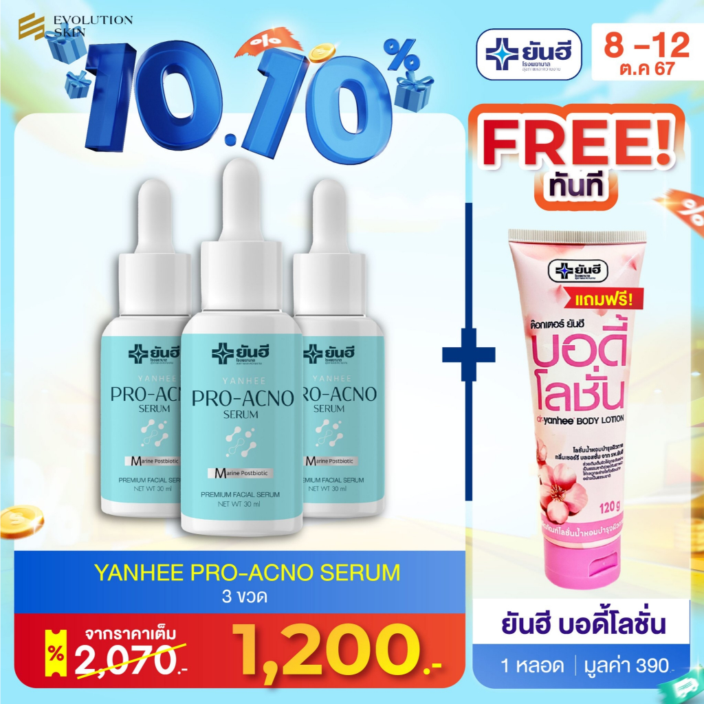 10.10 Yanhee Pro-Ekno Serum Acne Scars Tighten Pores [3 Bottles] Body Lotion [1 Tube]