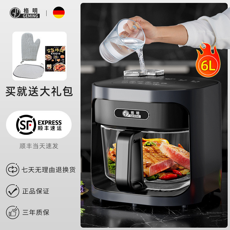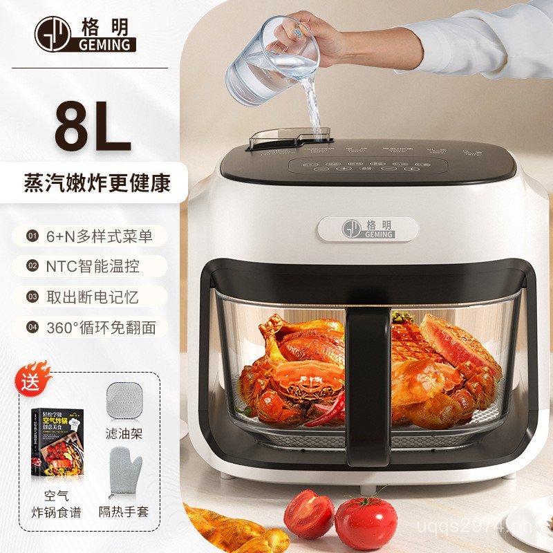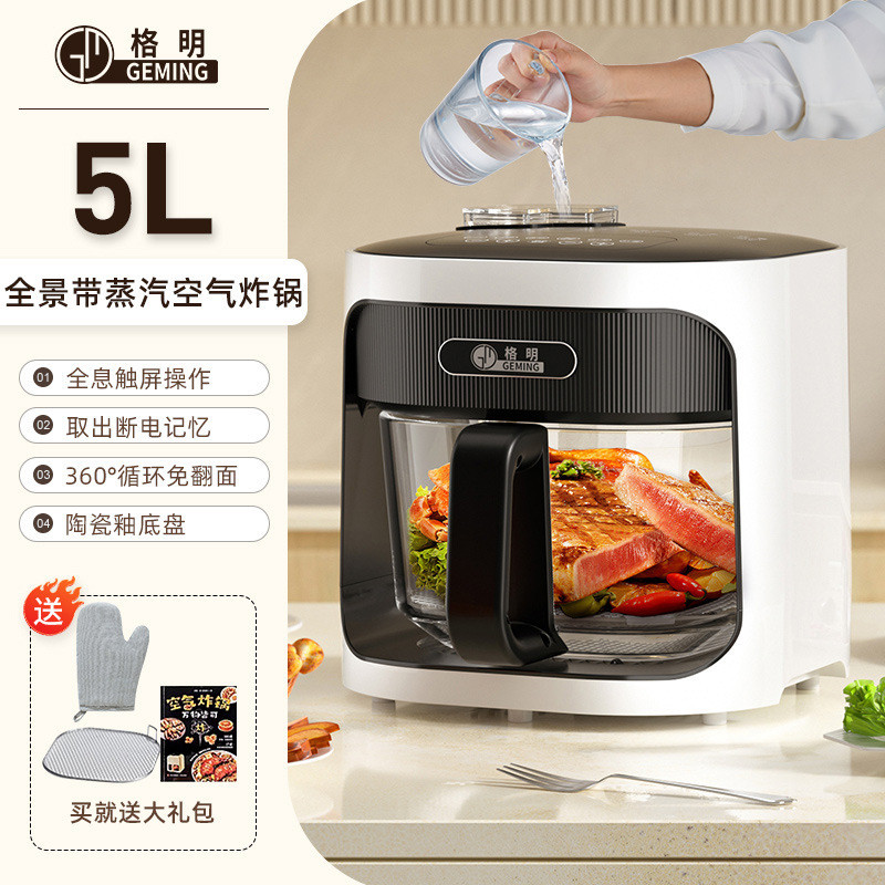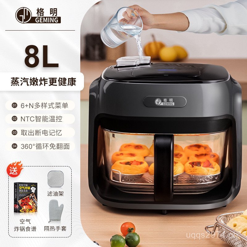 Steam Large Inner Tank Deep Fryer All-in-One Noodle Free Capacity Flip Household Glass Multi-Function WXI0