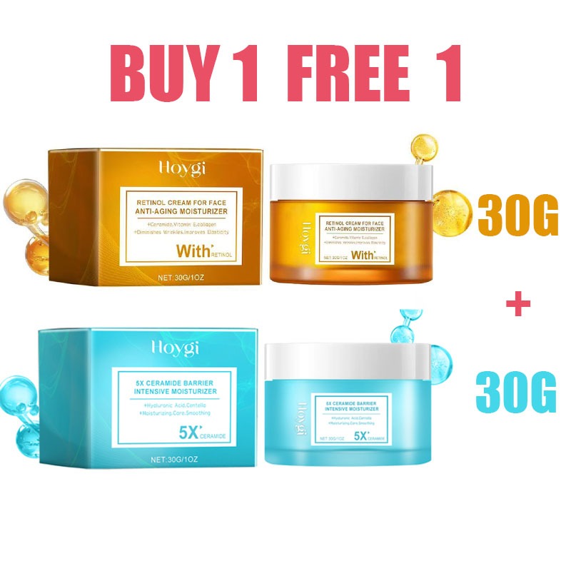 BUY 1 FREE 1 HOYGI 5X CERAMIDE BARRIER MOISTURIZER 3X RETINOL Ceramide Soluble Collagen Face Cream 30G+30G
