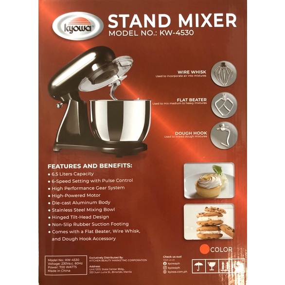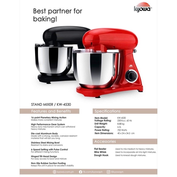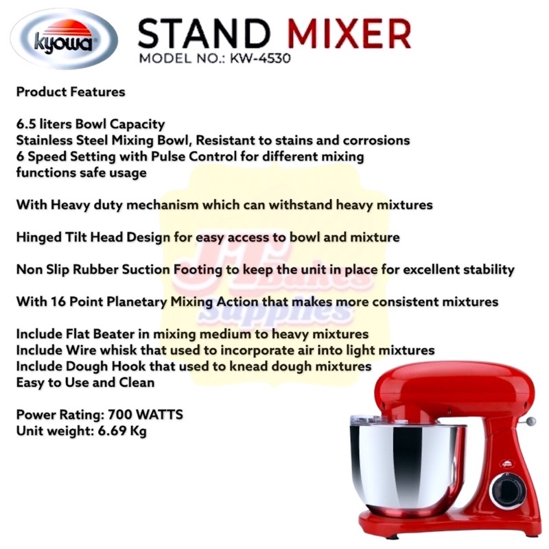Kyowa Kw-4530 Stand mixer 6.5 Liters Stainless Steel Bowl Aluminum Body with Freebie