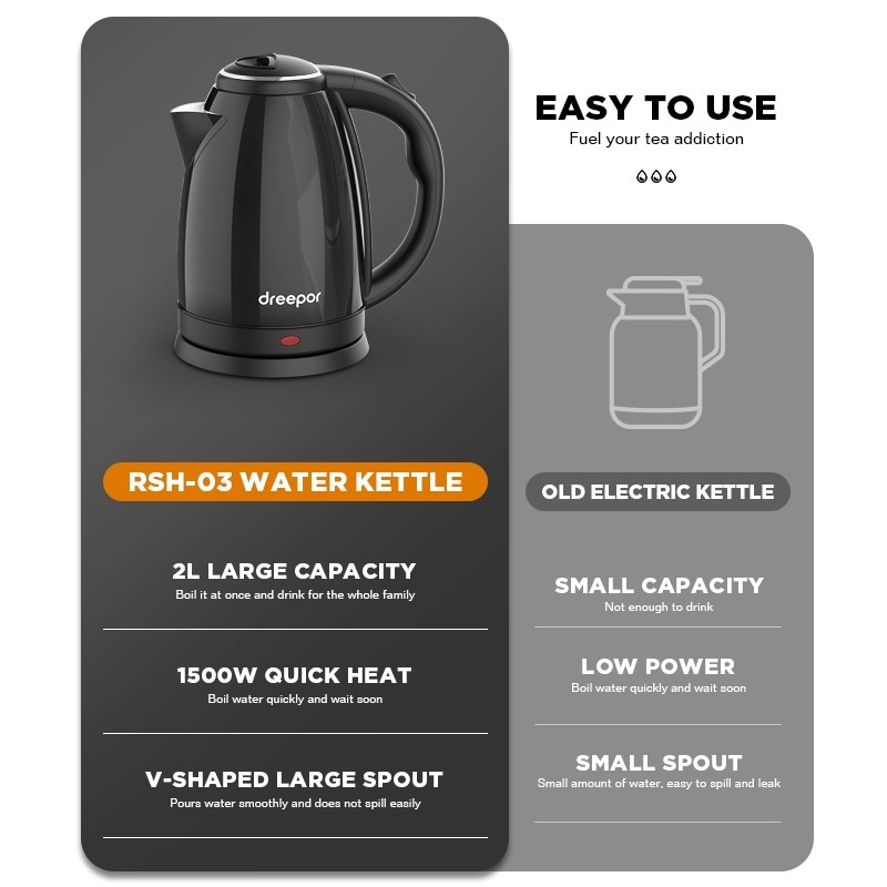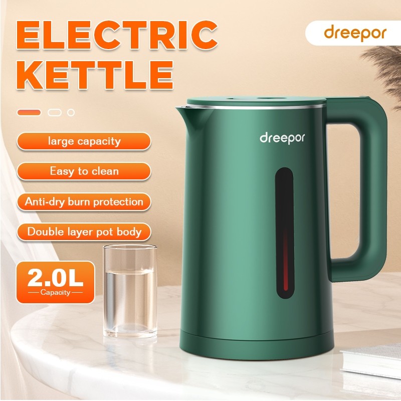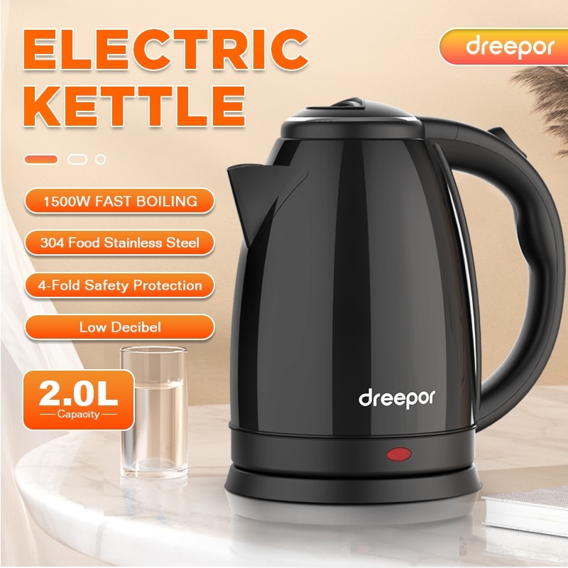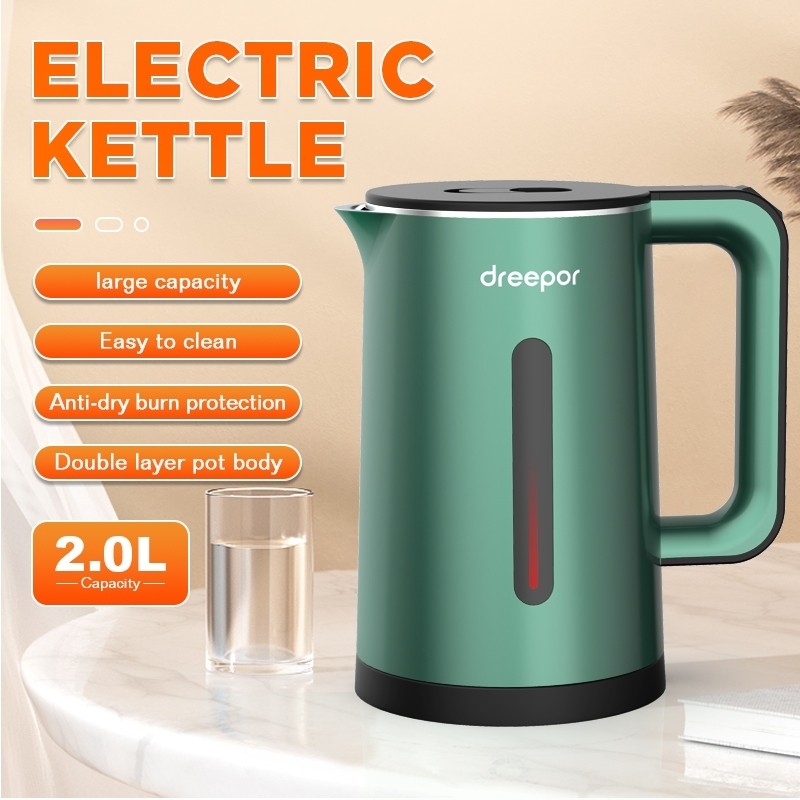 Dreepor 2L Capacity Electric Kettle Water Kettle Electric Heater Easy Use Fast Boiling