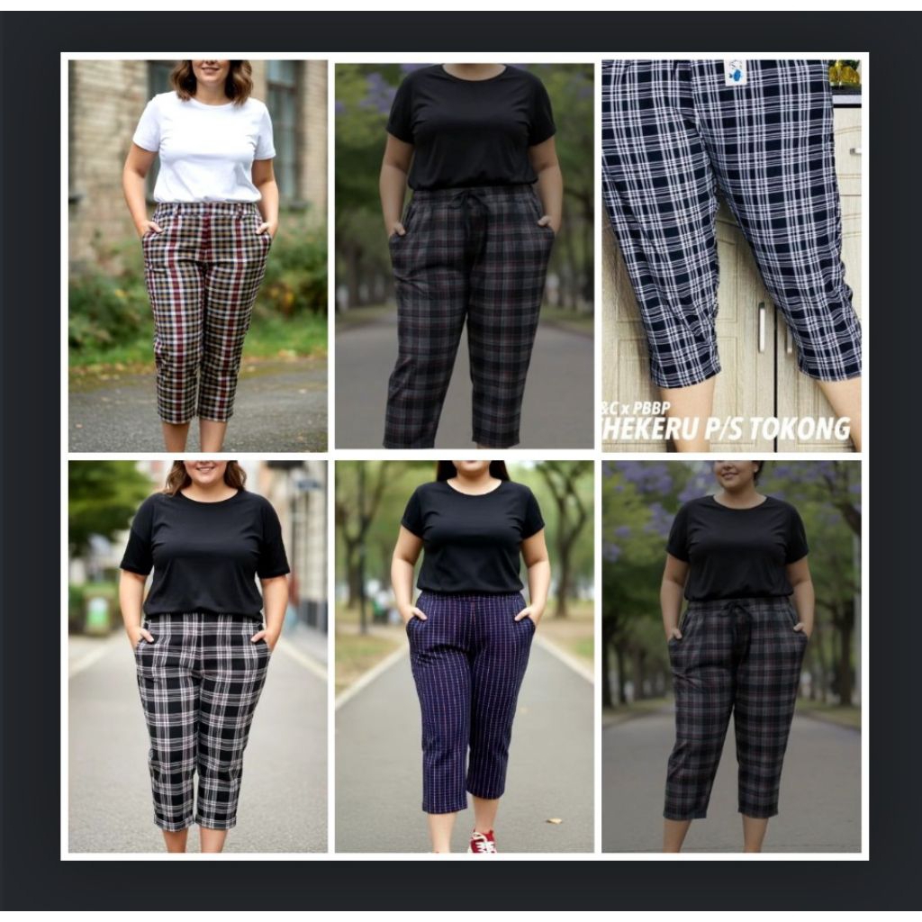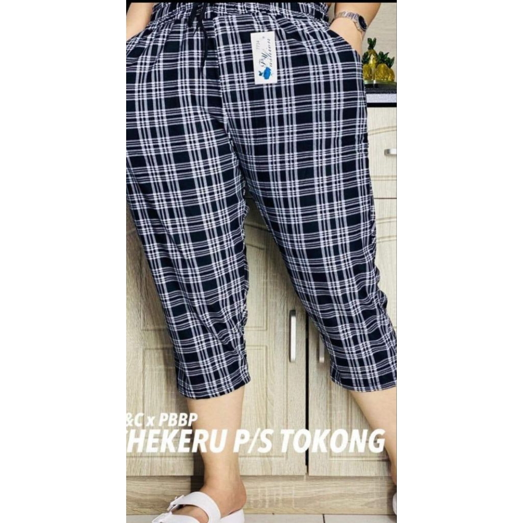 2pcs Checkered Plus Size Tokong Pants Pang-Alis Panlakad for Women (28-38 Inches Waist)