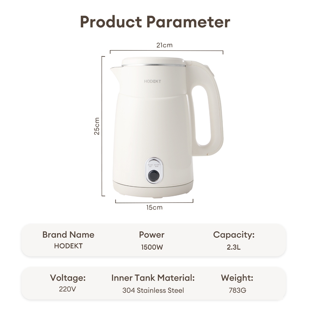 HODEKT Stainless Steel Electric Kettle Insulation Electric Water Heater High Power Fast Boiling