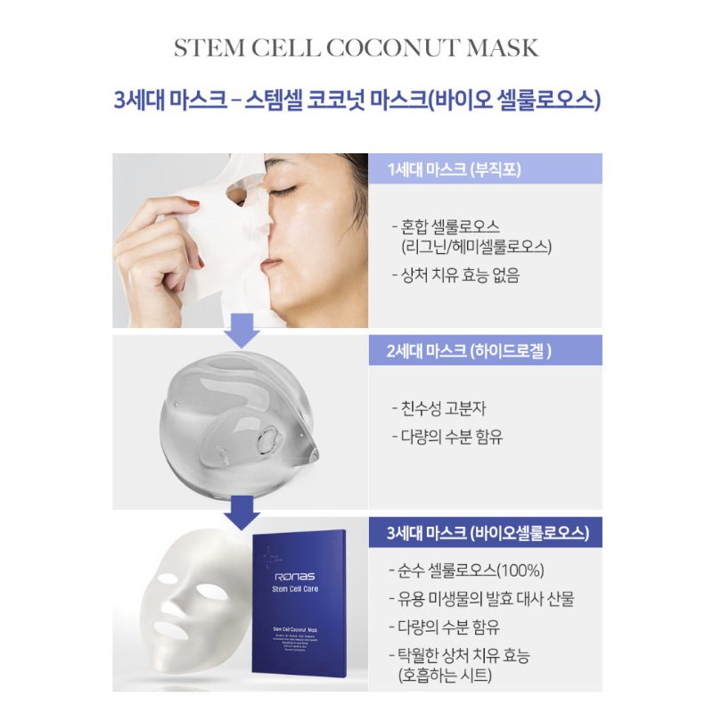 Ready to stock [RONAS] Stem Cell Coconut Mask Pack 30g × 5 Sheets/Hydrating Coconut Gel Mask