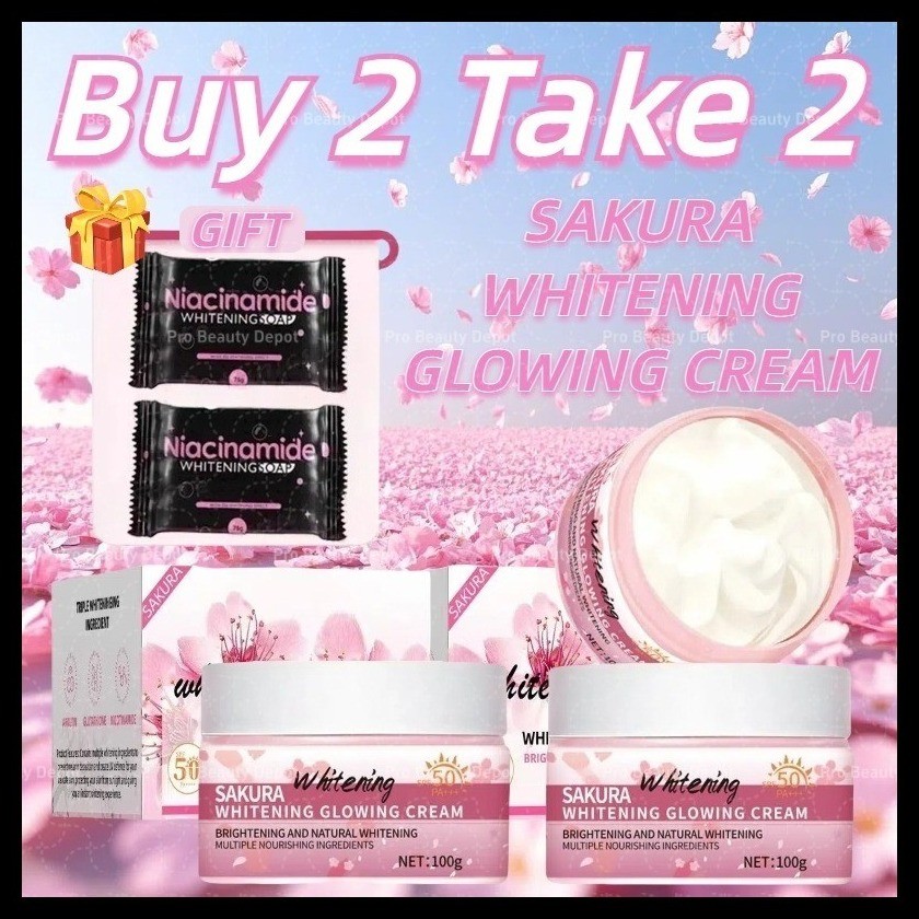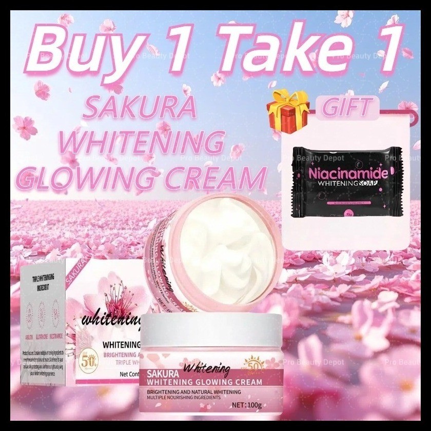 Sakura Whitening Glowing Cream -Niacinamide Glutathione Deep Moisturizing & Brightening SPF50 PA