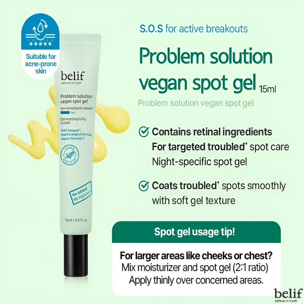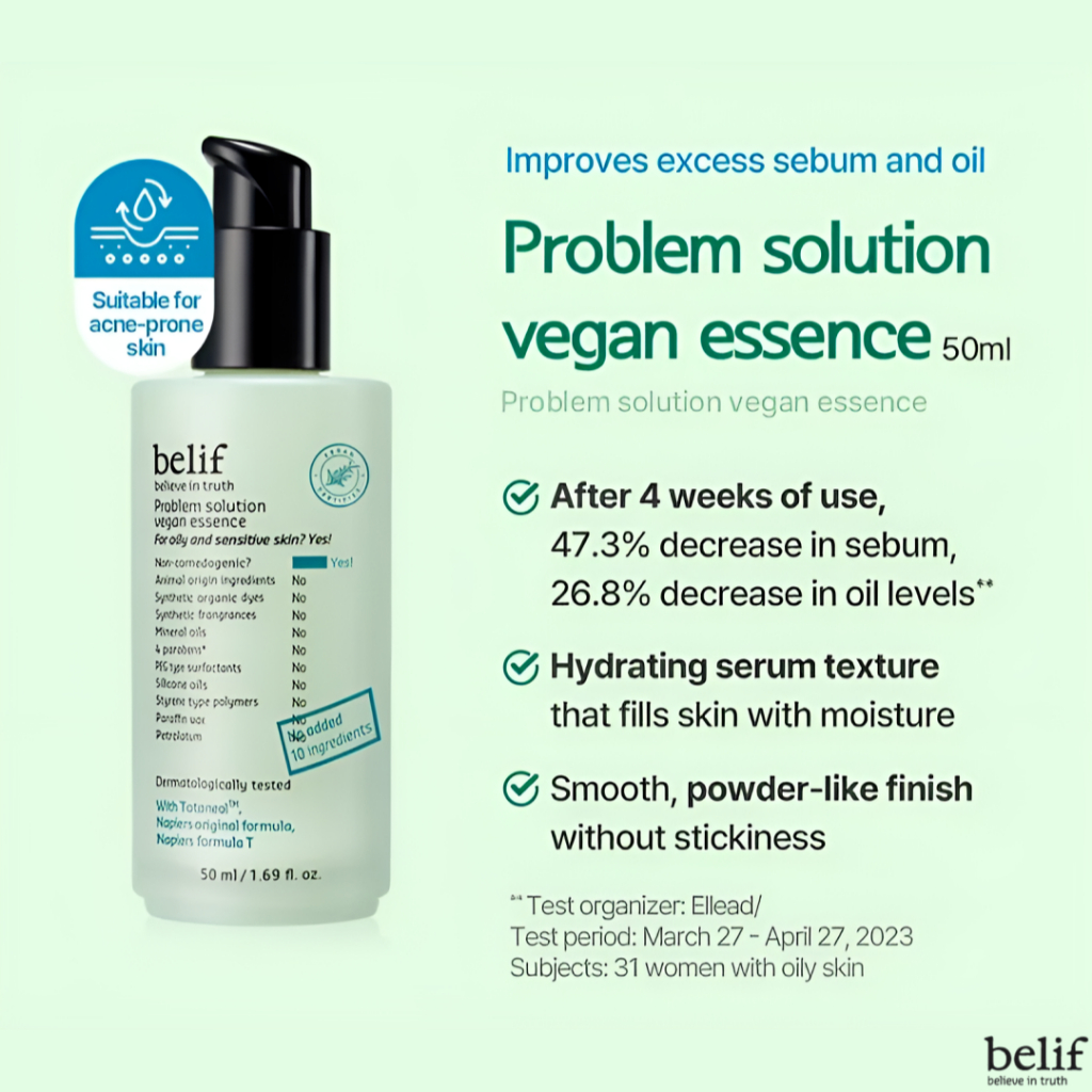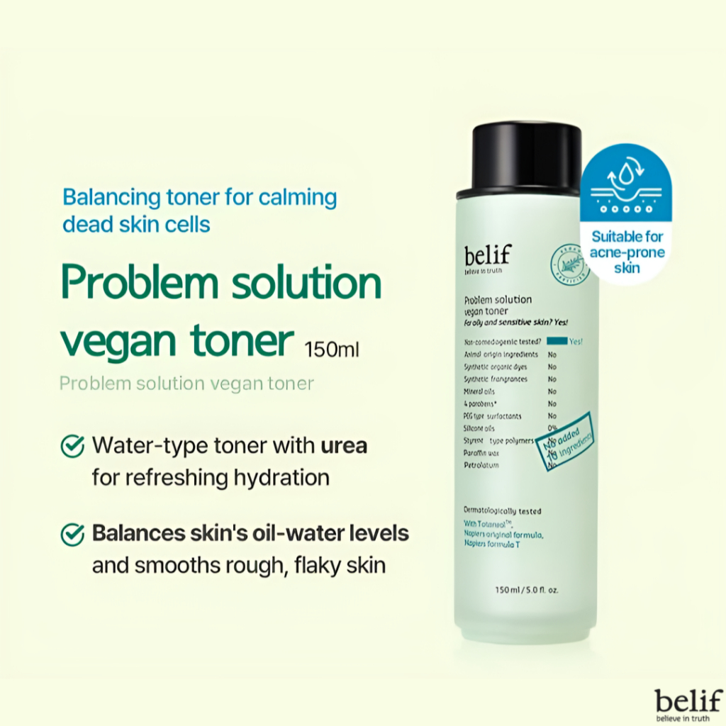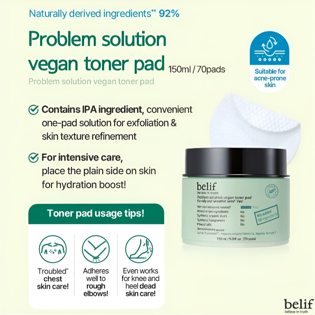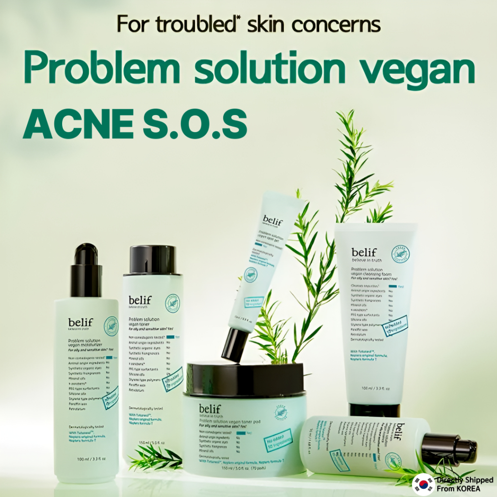 belif Troubled,Sensitive,Acne Skin PROBLEM SOLUTION VEGAN Cleansing Foam/TONER/Toner Pads/Essence/Spot Gel Acne, Blemishes, Clogged Pores, Dryness, Enlarged Pores
