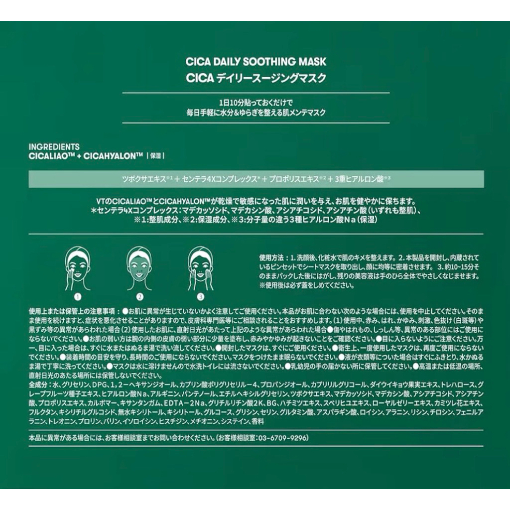 Japan Direct CICA Daily Soothing Mask 30 Sheets VT Cosmetics Best Selling