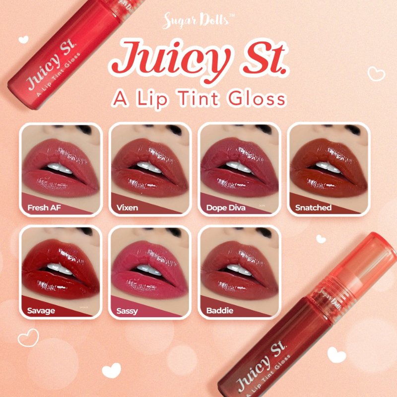 Sugar Dolls Juicy St. Lip Tint Gloss Set | Long-Lasting, Moisturizing, Vibrant Colors – 7 Shades