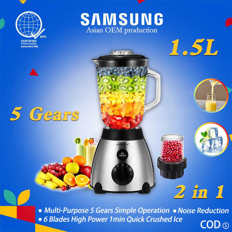 Multifunctional Juicers 1.5L 2 In 1 5 Gears Fruits And Vegetables With Ice 6 Blades Noise Reduction