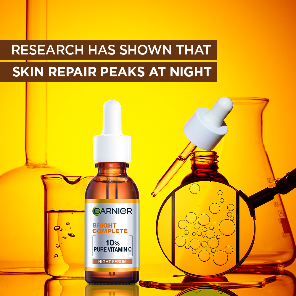 NEW Garnier 10% Pure Vitamin C Overnight Serum (15ml) - for Brightening Dark Spots, Acne Marks