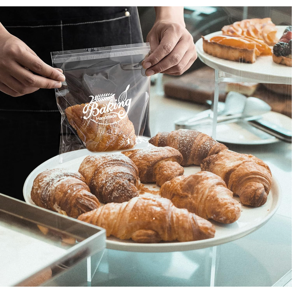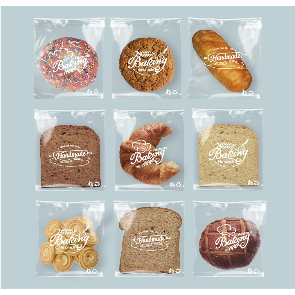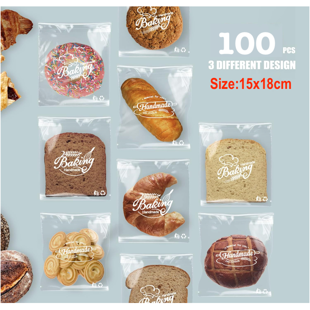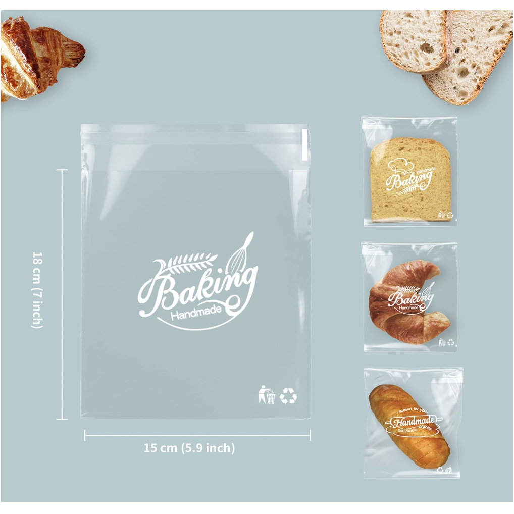 100Pcs Bread Cookie Candy Treat Bags Self-Adhesive Sweets Biscuit Dessert Plastic Bags Packaging