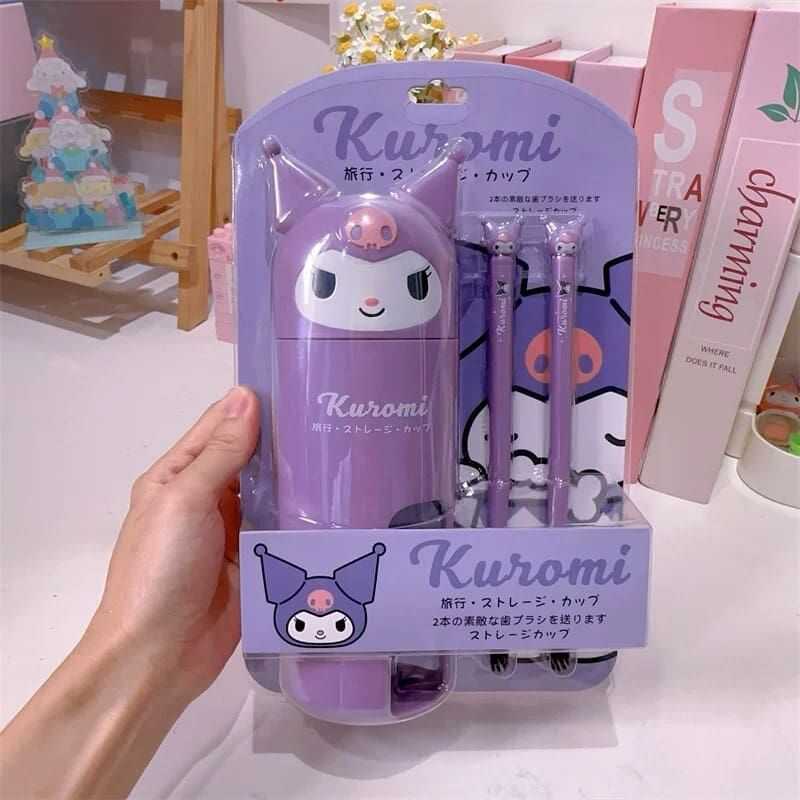 Kuromi Melody Hello Kitty Portable Toothbrush Set Cup Travel 2E7