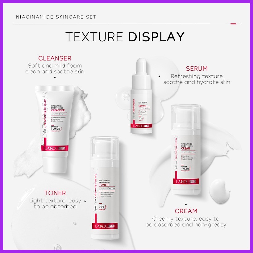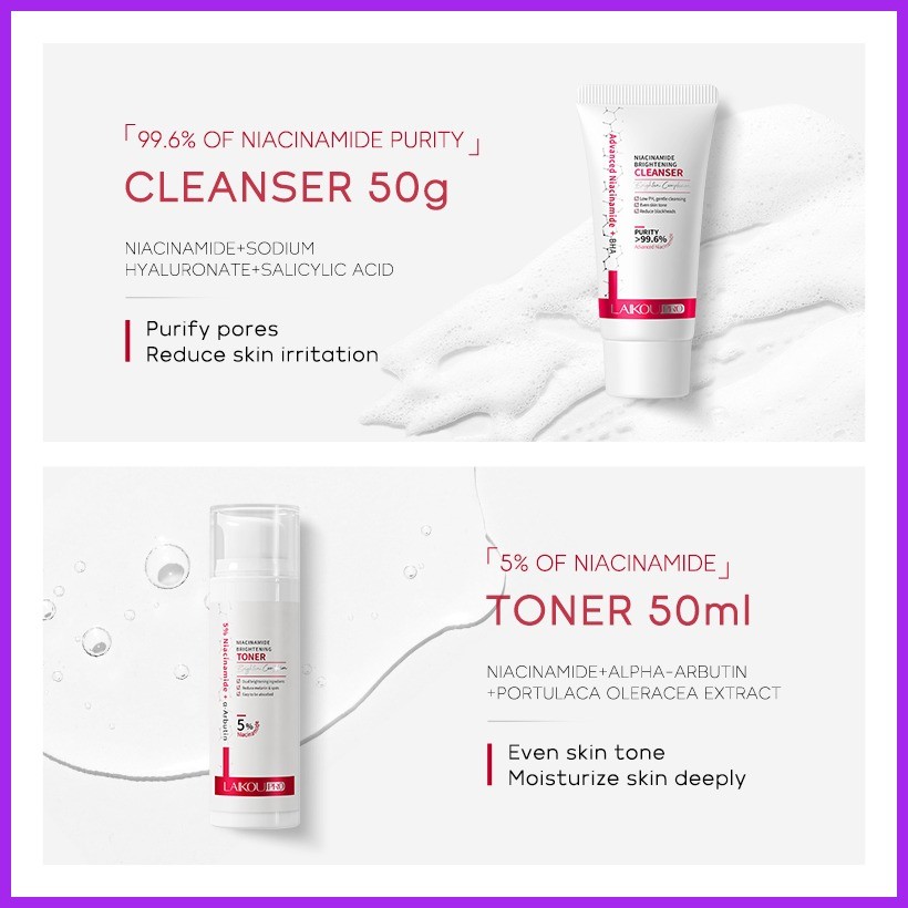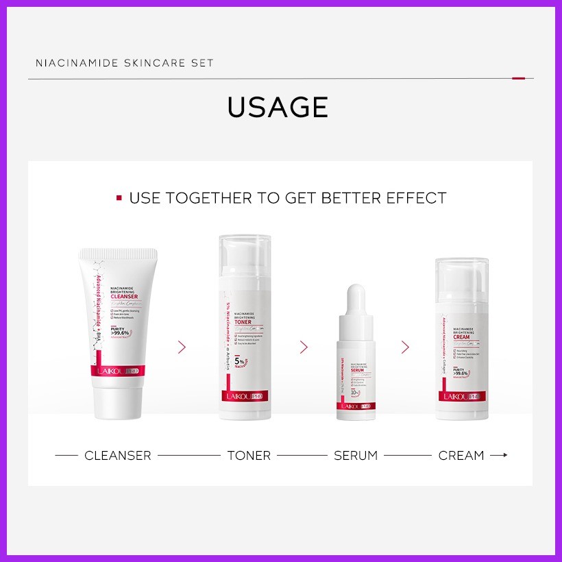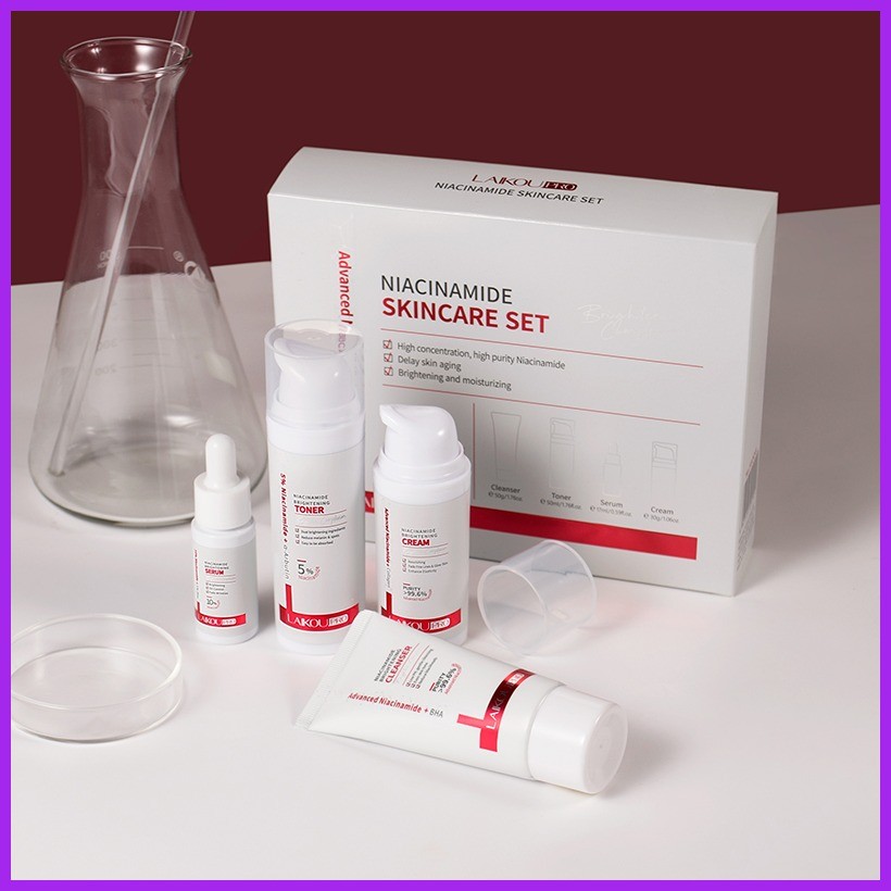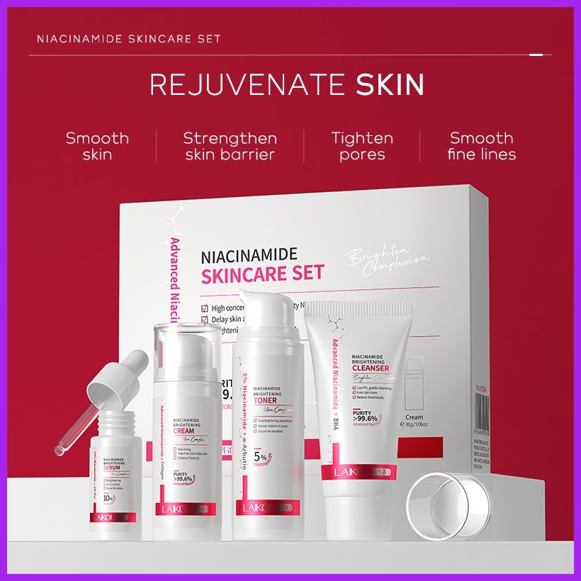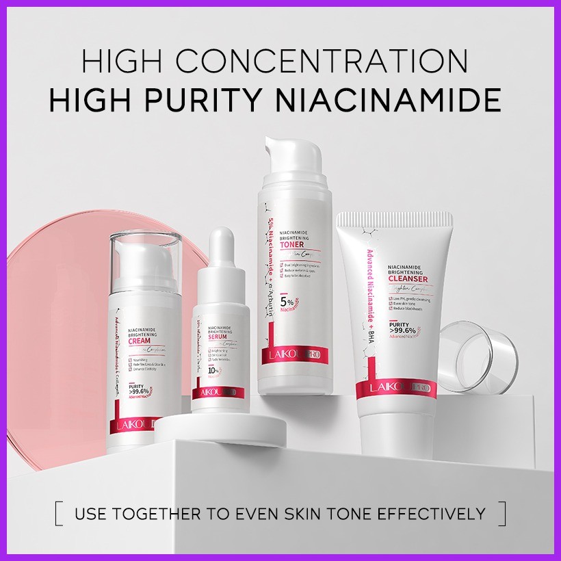 ✆ ☈ LAIKOU Pro 5% Niacinamide Skincare 4pcs/Set Anti-aging Serum Cream Brightening Toner Facial Was
