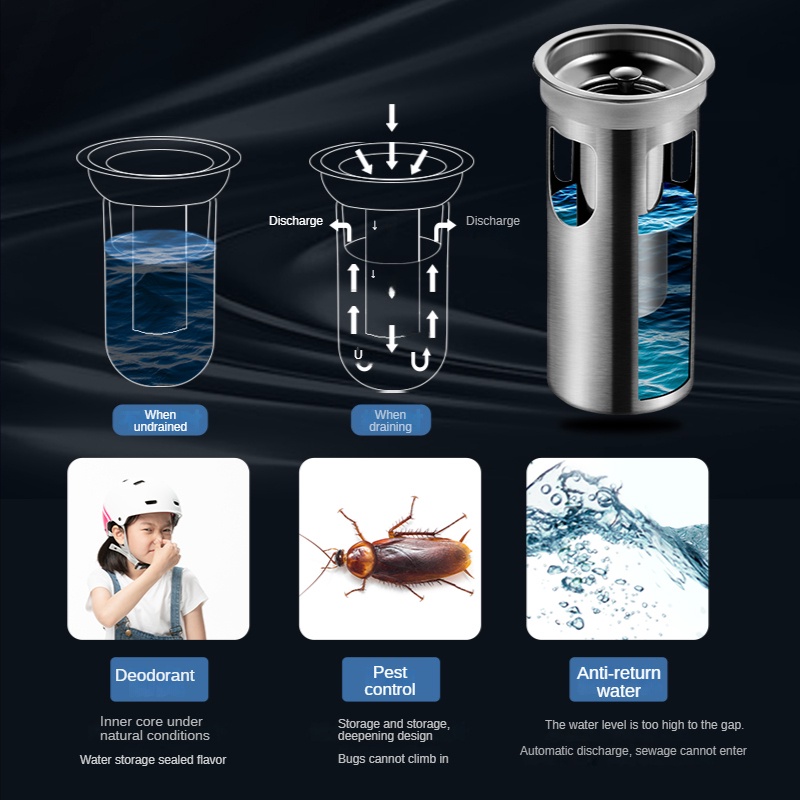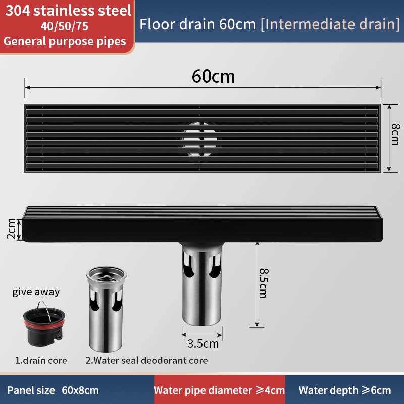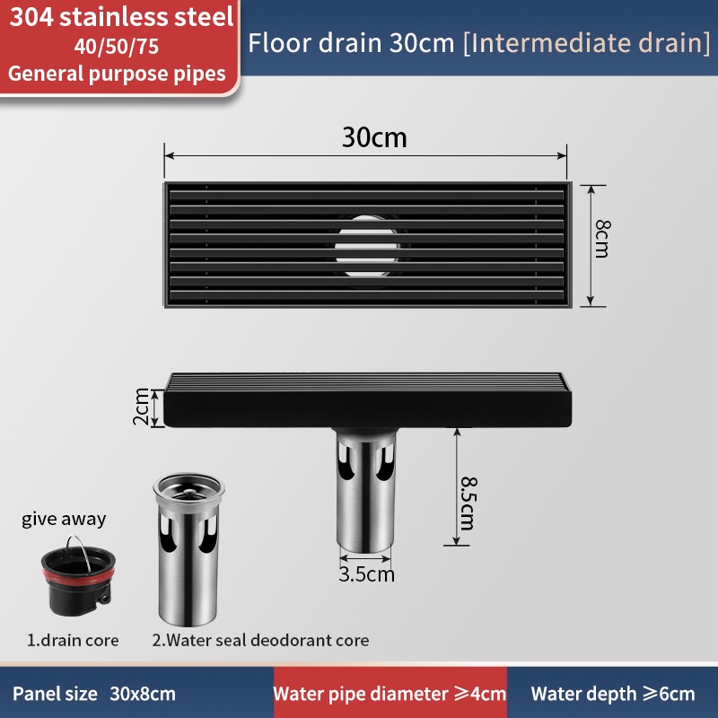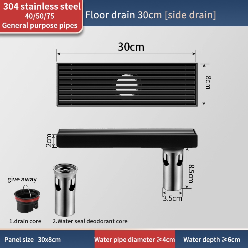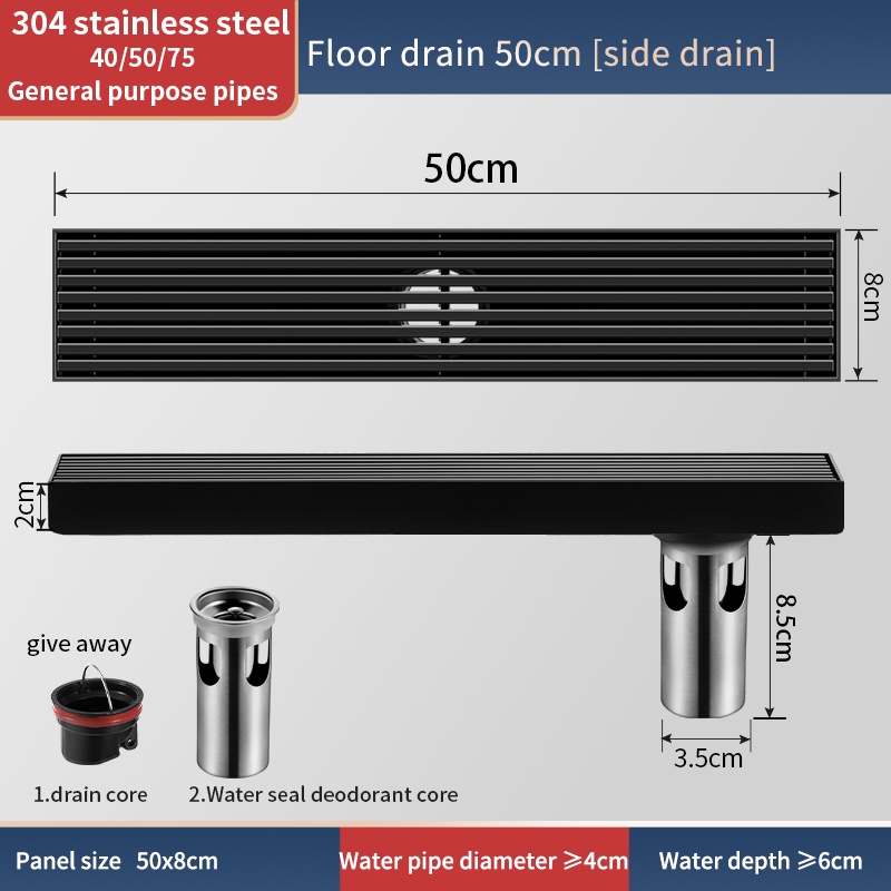 Rectangular black 304 stainless steel floor drain bathroom drain bathroom High Quality floor drain anti odor Thickened Large Displacement