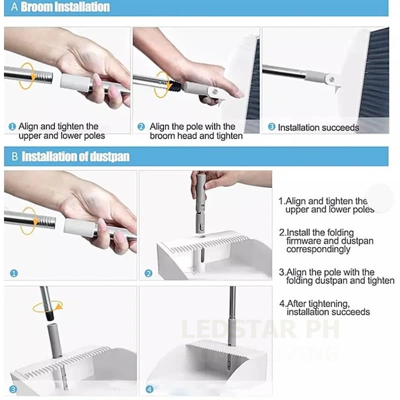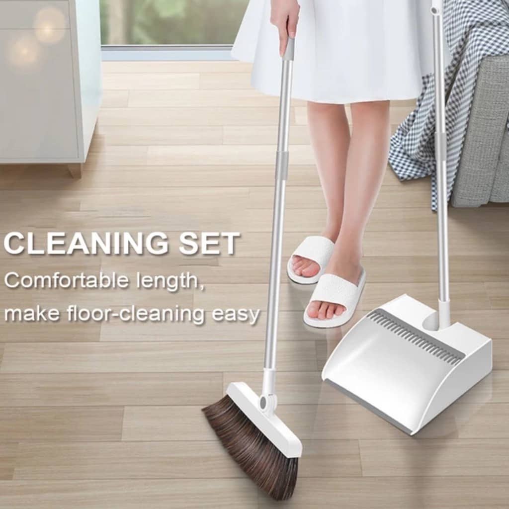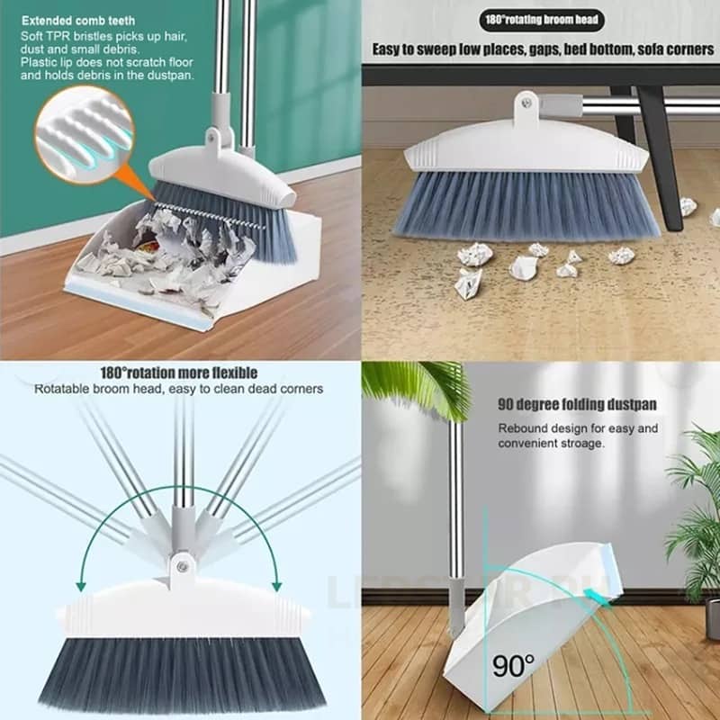 Broom and Dustpan Set Household Cleaner Sturdy & Durable Long Handle Sweeper Foldable and Rotatable