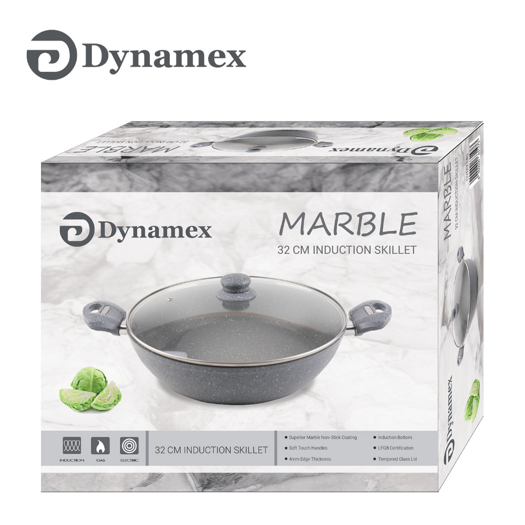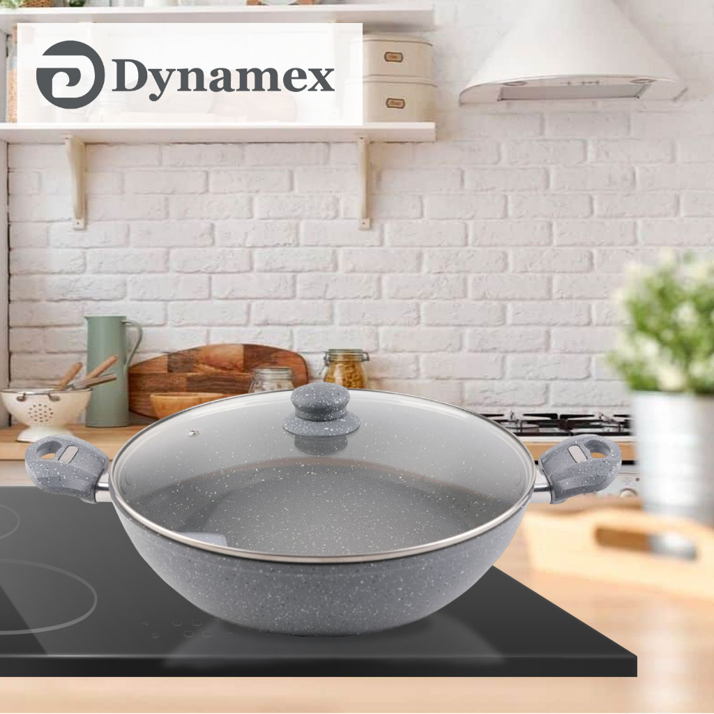 Dynamex 32cm Marble Double Eared Wok Pan Skillet with Glass Lid Non-stick