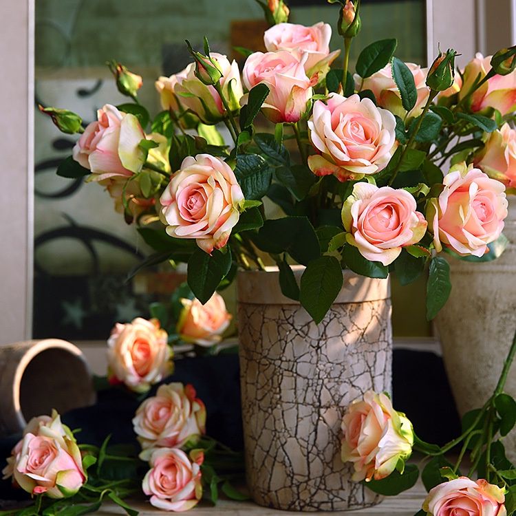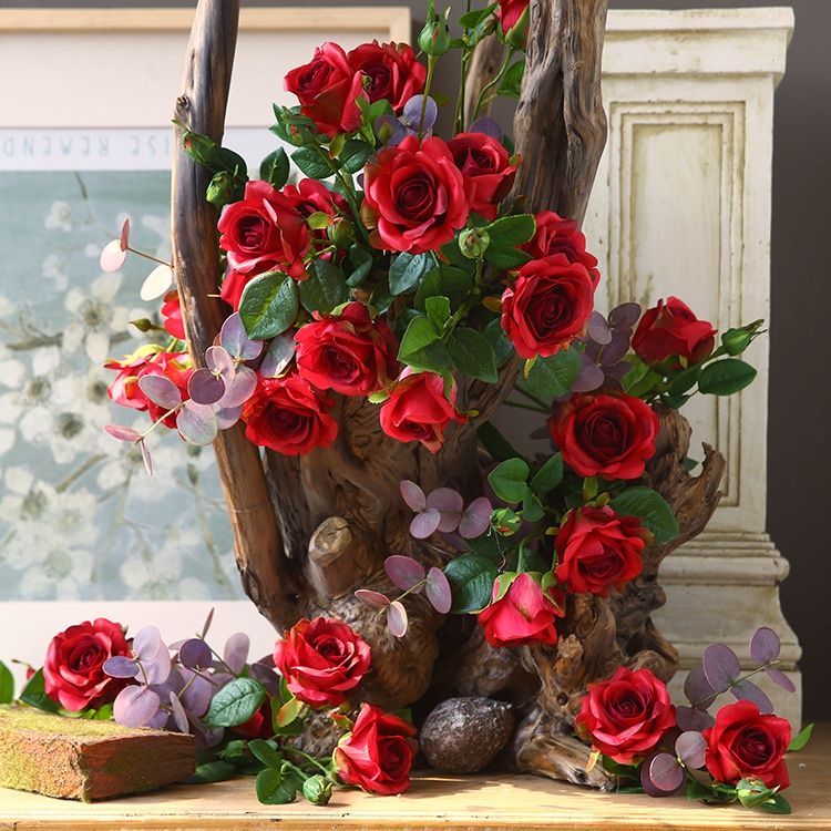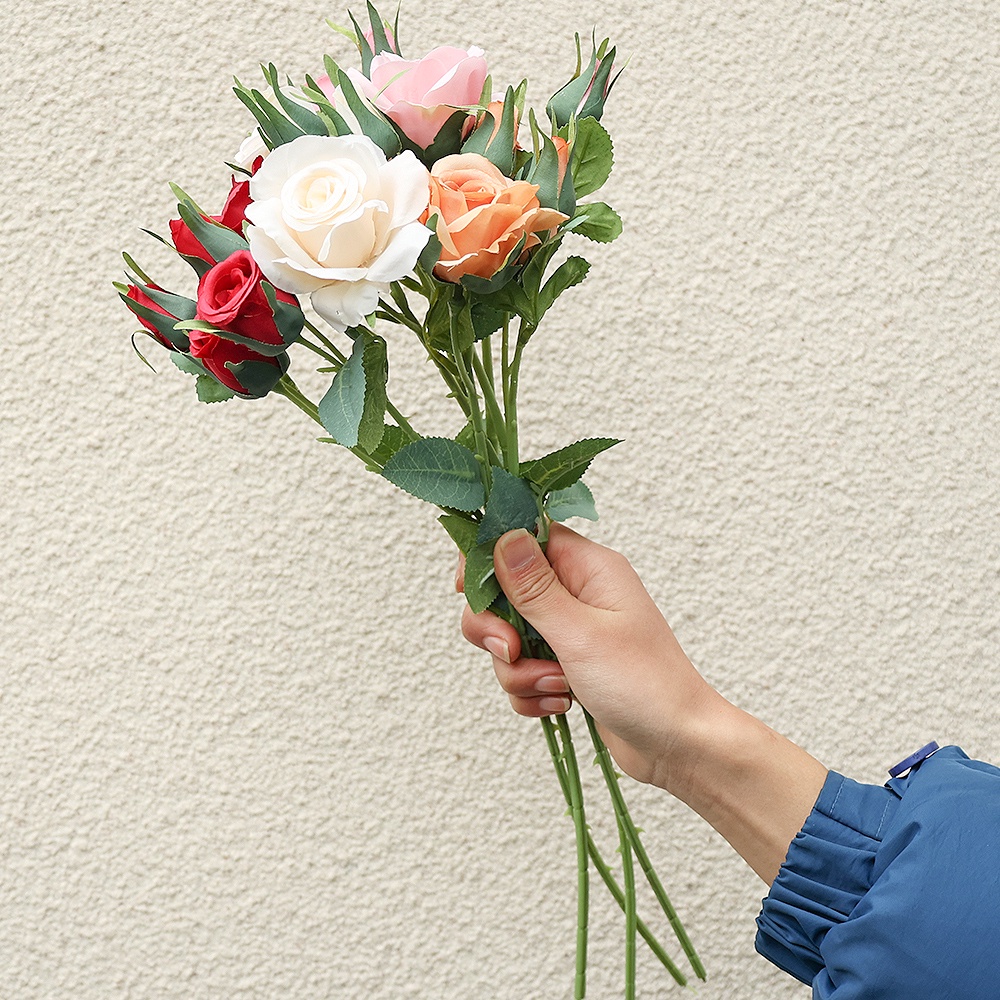 Red Artificial Silk Roses Flower Bouquet Wedding Bride Home Fake White Flowers Home Table Decoration