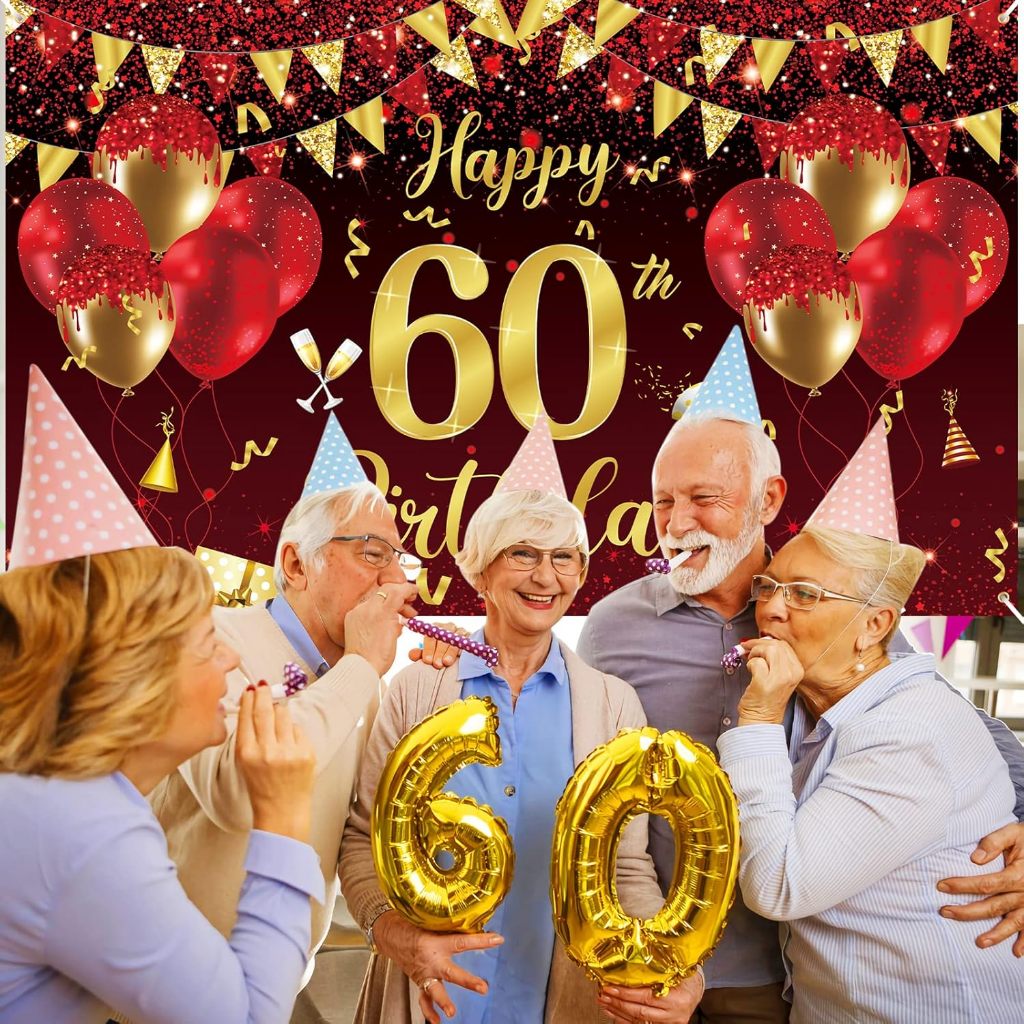 Red Black Gold 60th Birthday Banner Decorations for Men Women Shiny Red Black Happy 60th Birthday Backdrop Sign in Birthday Decor Background Anniversary Party Supplies