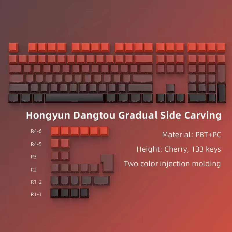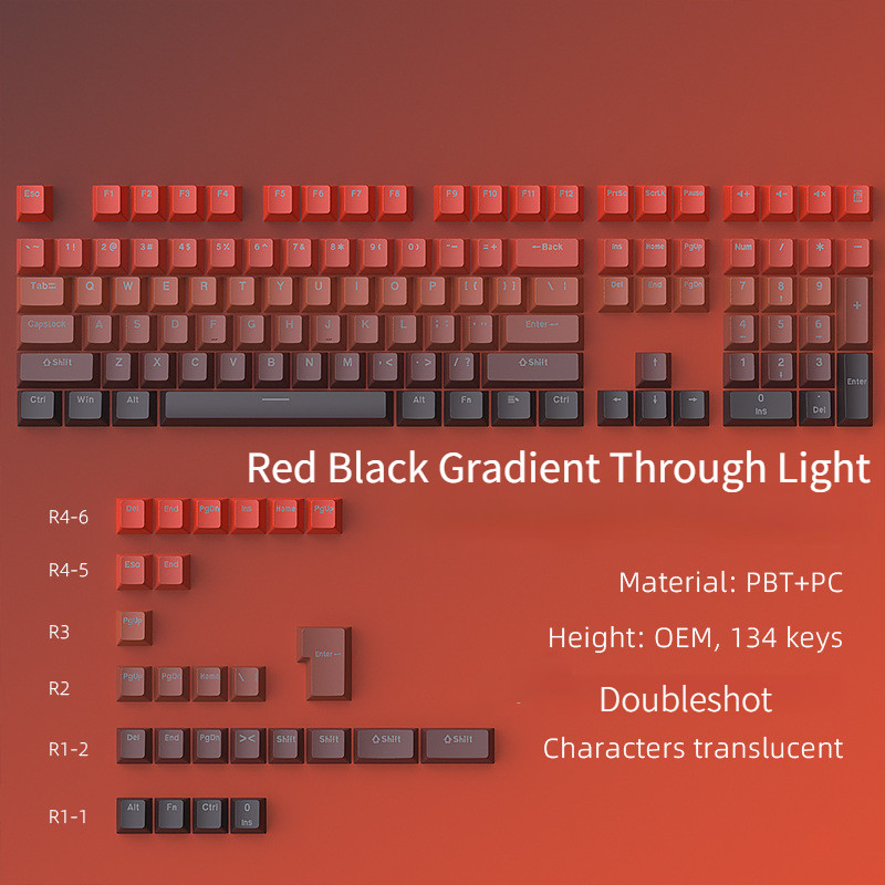 【Local Delivery】Red Black Gradient Front Carving Through Light Keycap Stabilizer 6.25u Doubleshot OEM Profile for All MX Type 61% 66% 98 %100% 108% Mechanical Keyboard