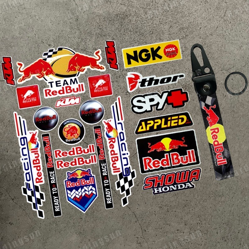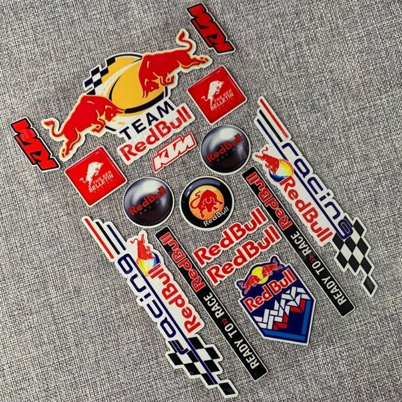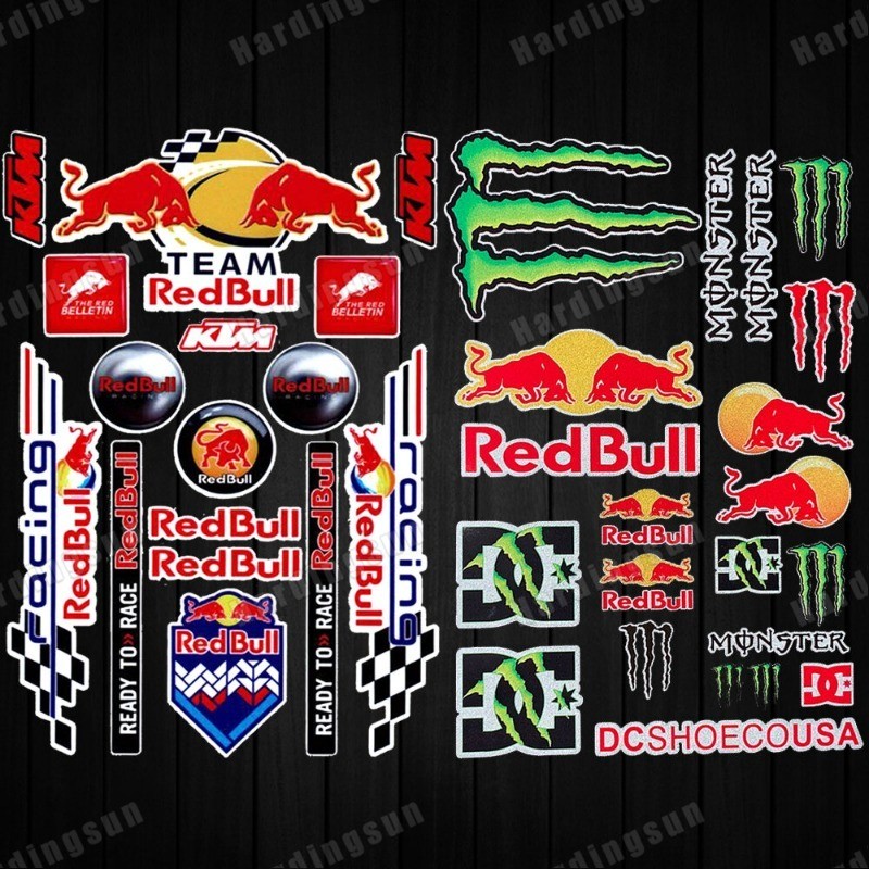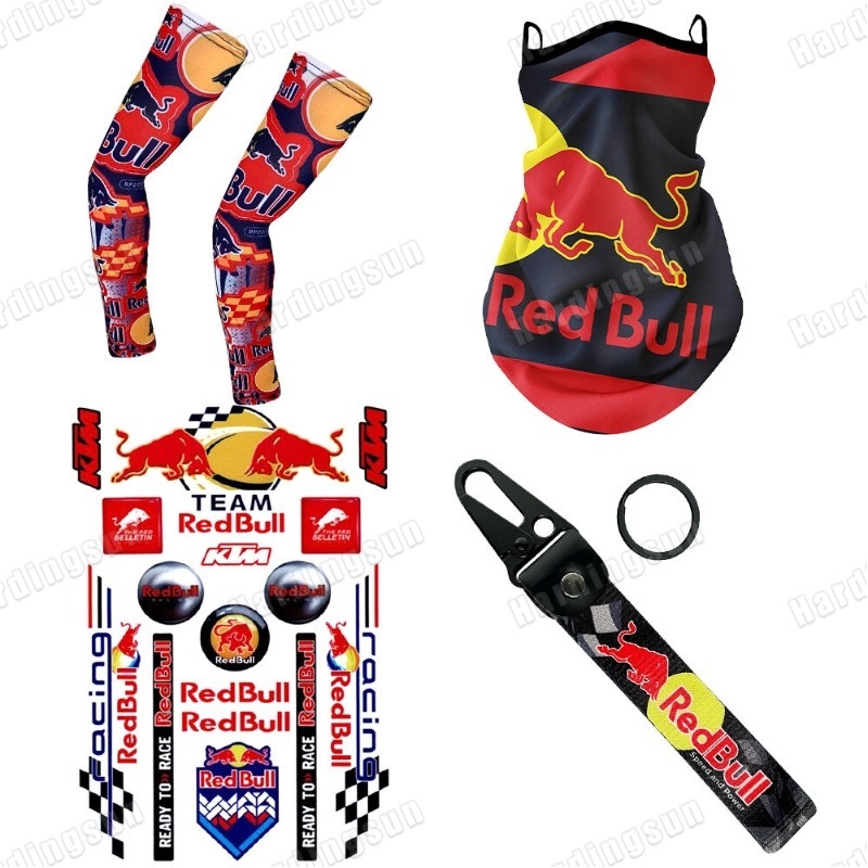Red Bull Reflective Full Set of Helmet Stickers Body Fuel Tank Stickers 3M Motorcycle Stickers Red Bull Full Set of Red Bull Sleeves Face Towel