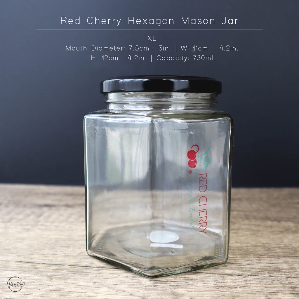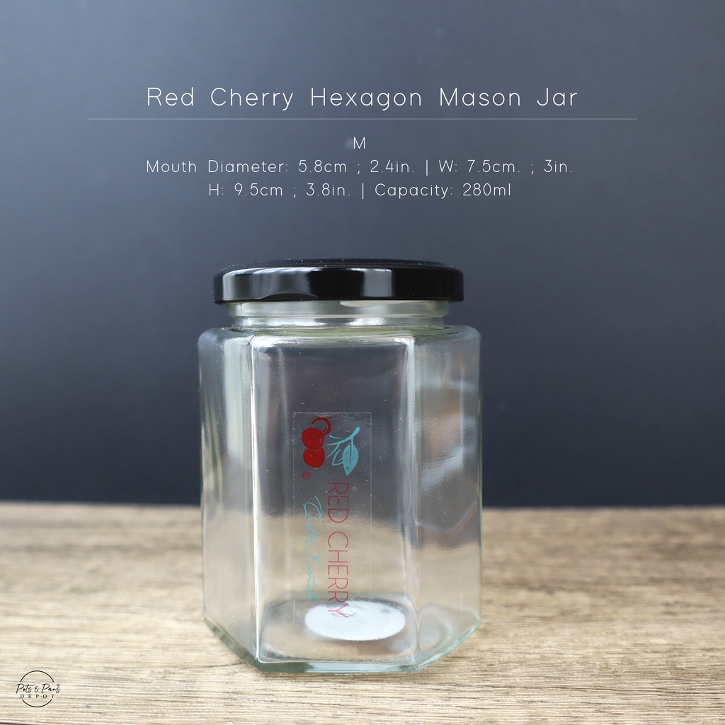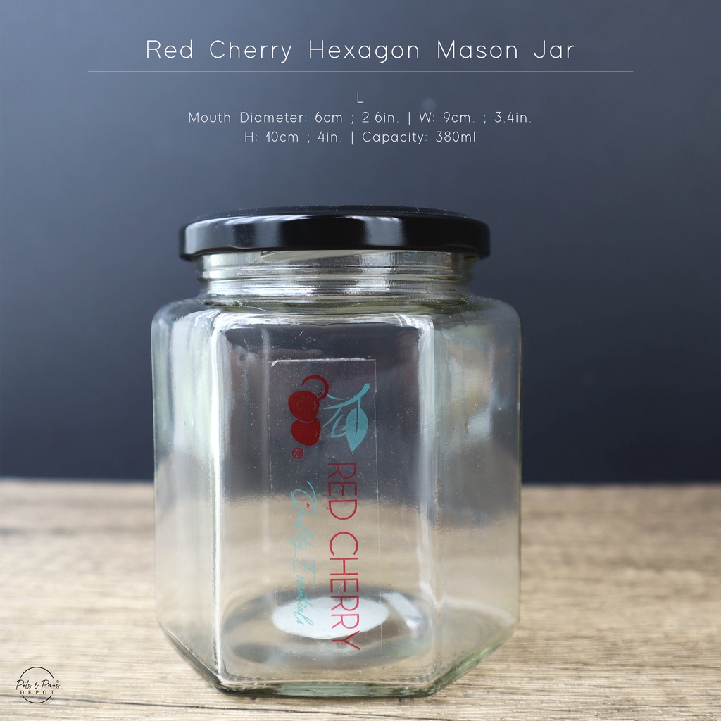 Red Cherry Hexagon Mason Jar