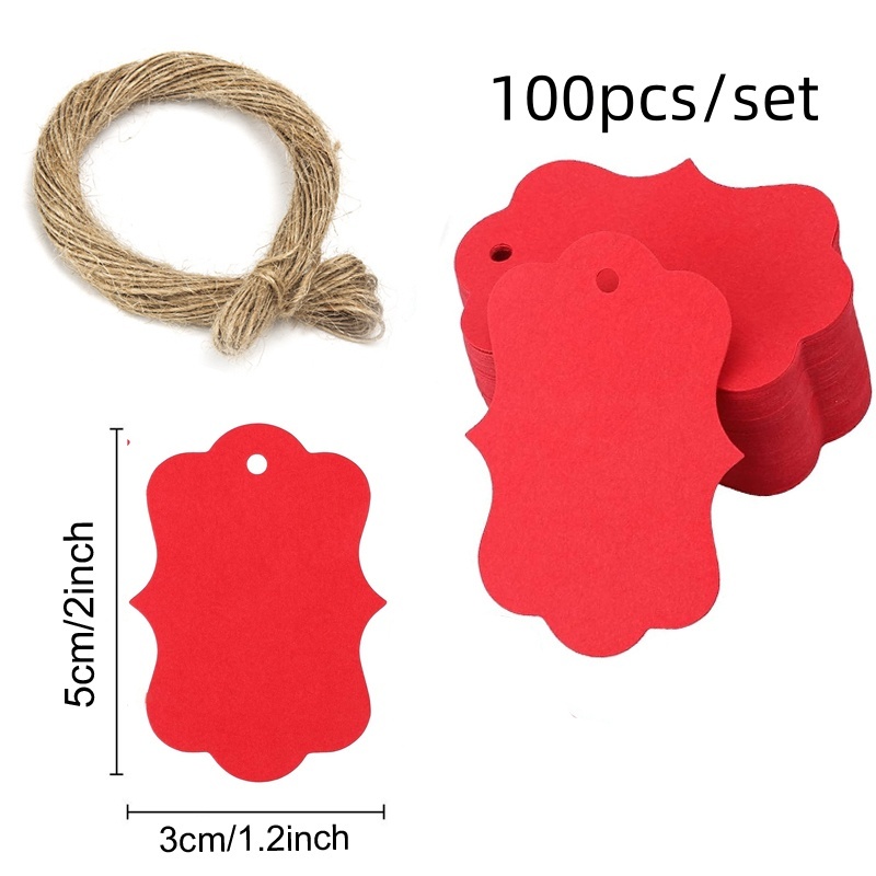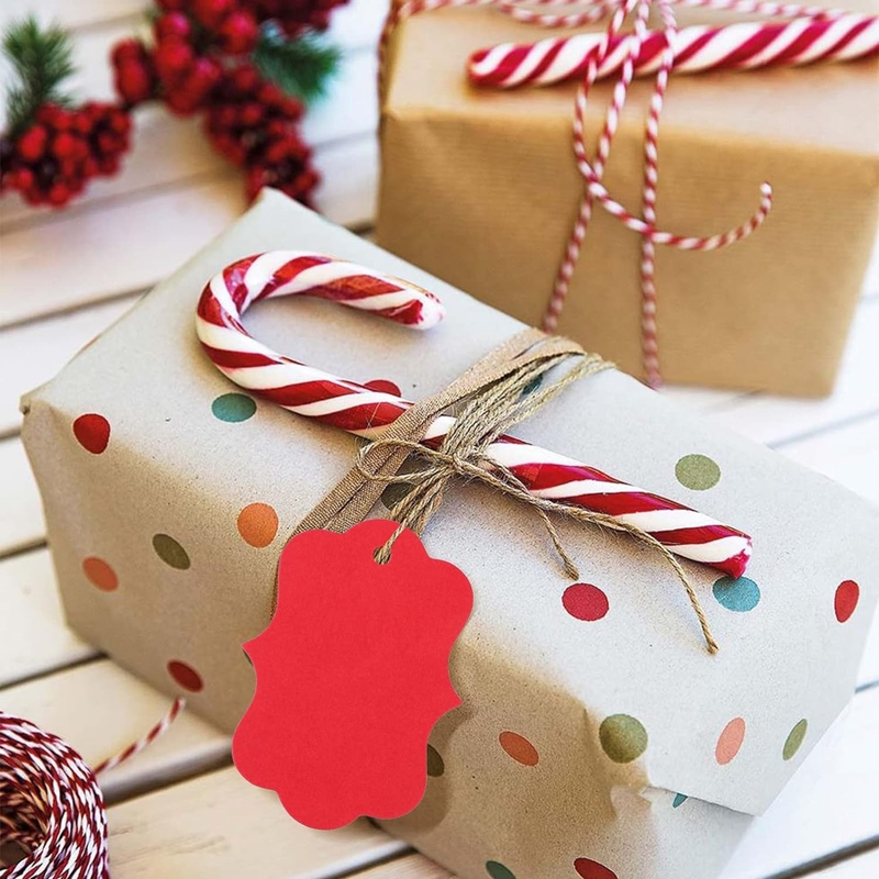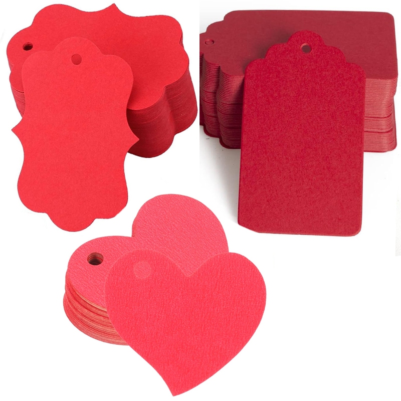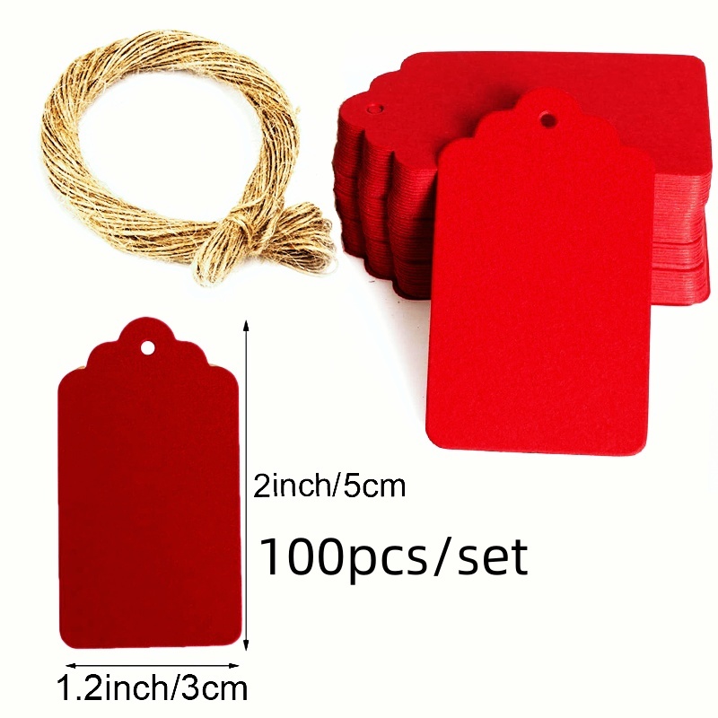 Red Gift Tags, 100PCS Red Paper Gift Tags with String, Blank Labeling Tag for Present Wrapping, Mother's Day, Christmas, Valentine's, DIY Arts & Crafts