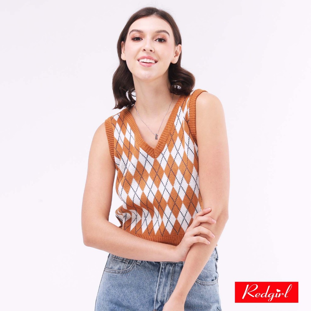 Red Girl Sleeveless V-neck Knitted Blouse RGT14-0028