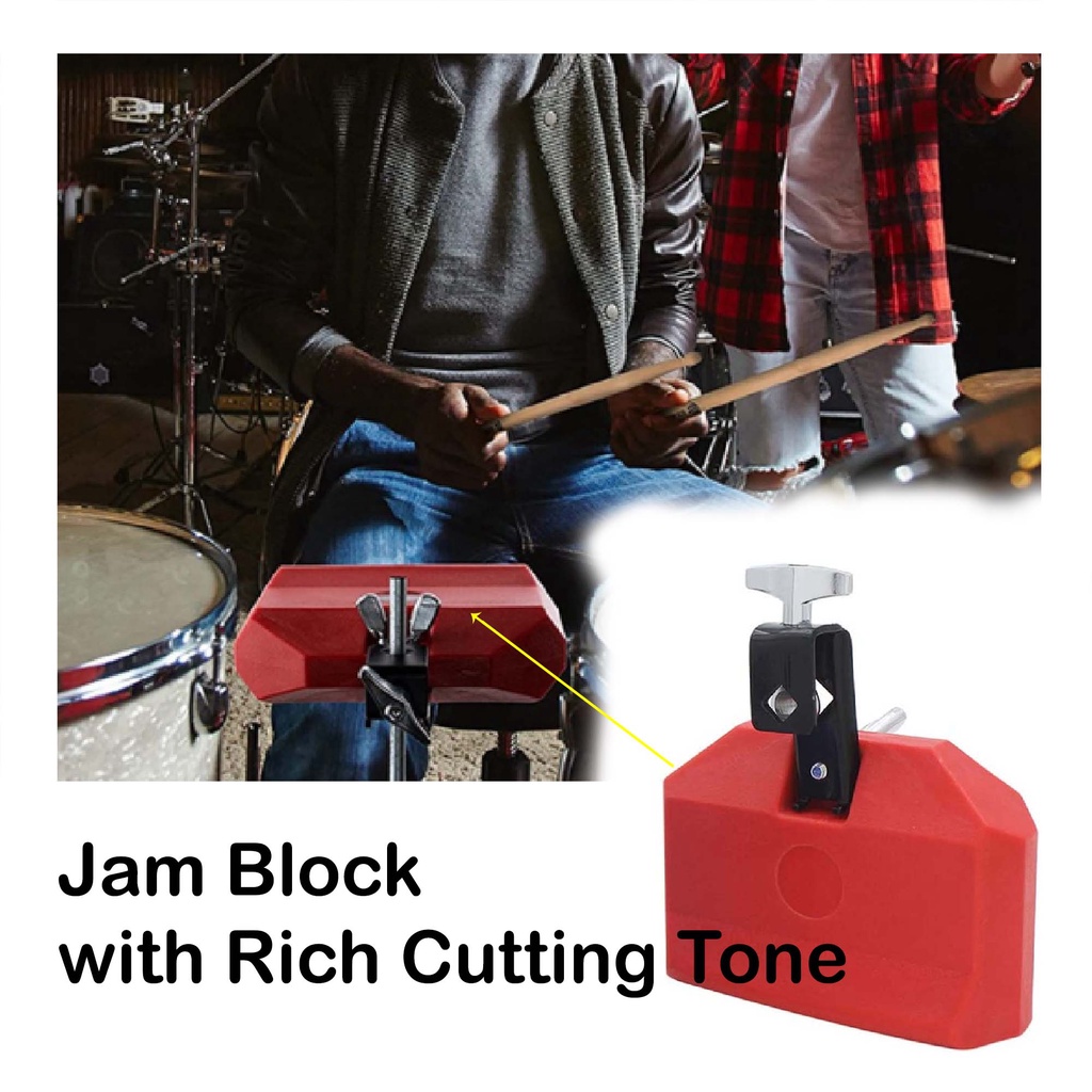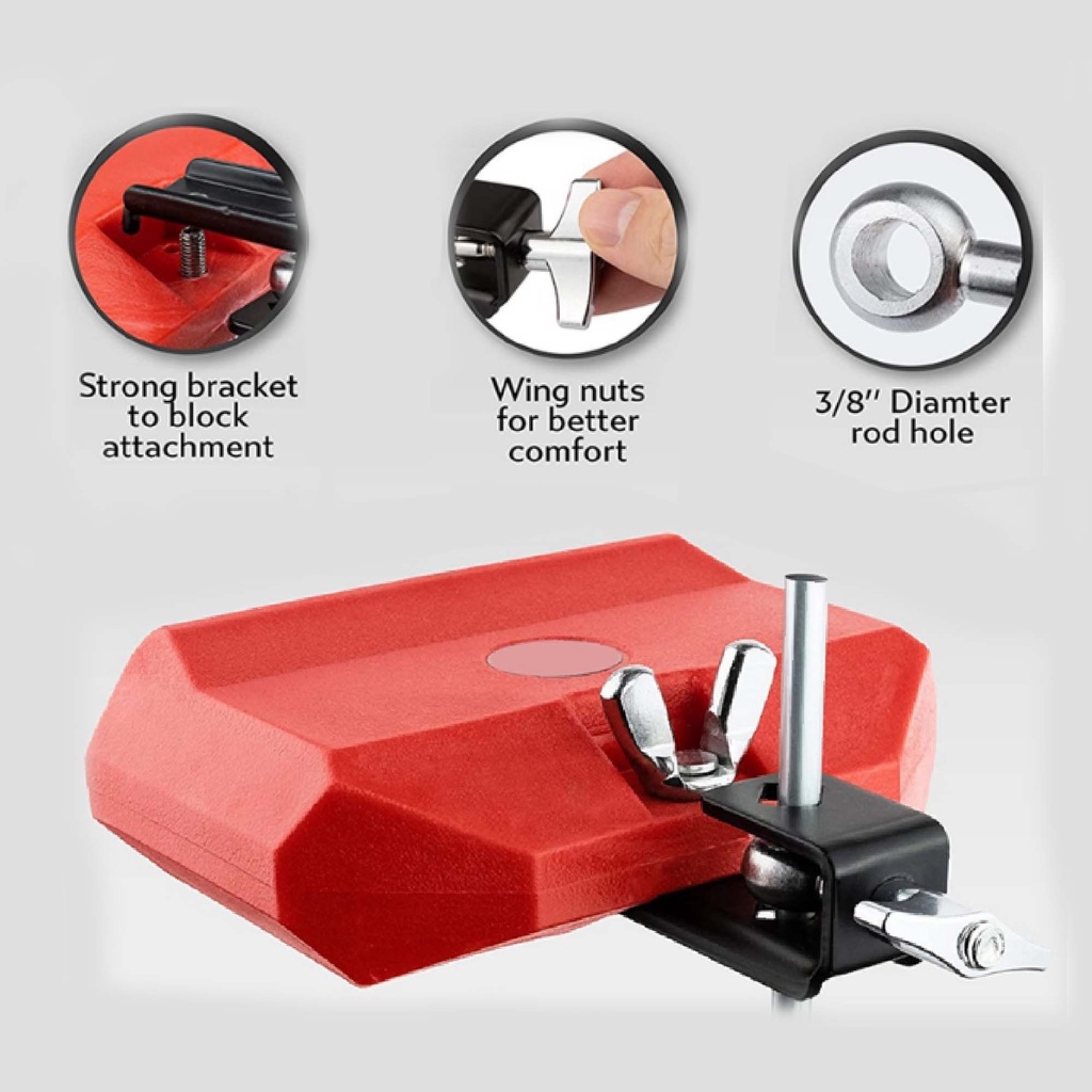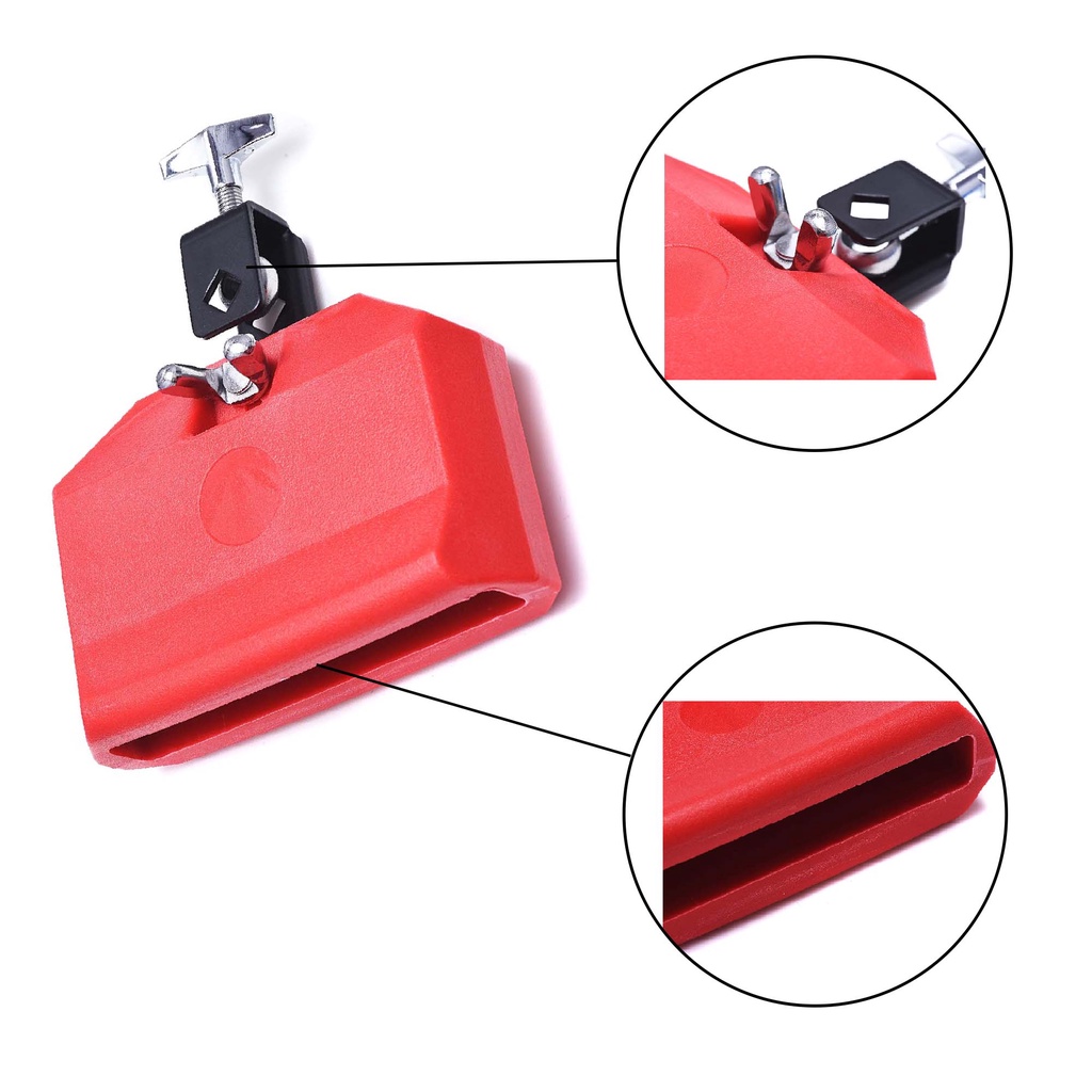 Red Jam Block Bell Percussion Latin Music Cowbell Medium Pitched Sound Drum Adjustable Mount Bracket