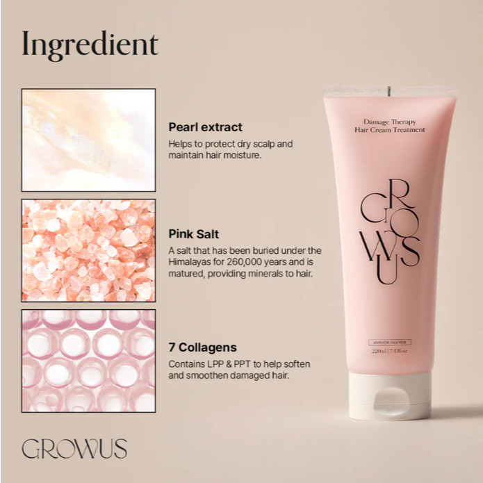 GROWUS Damage Therapy Hair Cream Treatment 220ml with FREEBIES