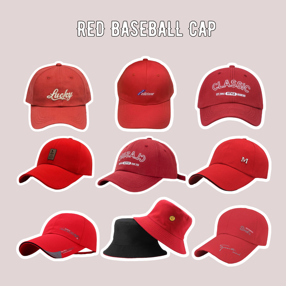 Red/Maroon Color Theme Cap/Hat Korean Cotton Unisex Baseball Cap & Hat School Cap OOTD
