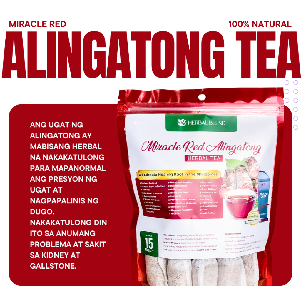 Red Miracle Alingatong Tea, 15 pcs Pouch Herbal, Organic, Gout,High Blood, Blood Pressure