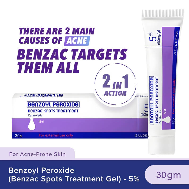 BENZAC Benzoyl Peroxide Spots Treatment Gel 5% 30gm Anti-Acne Pimple Gel Cream 30g