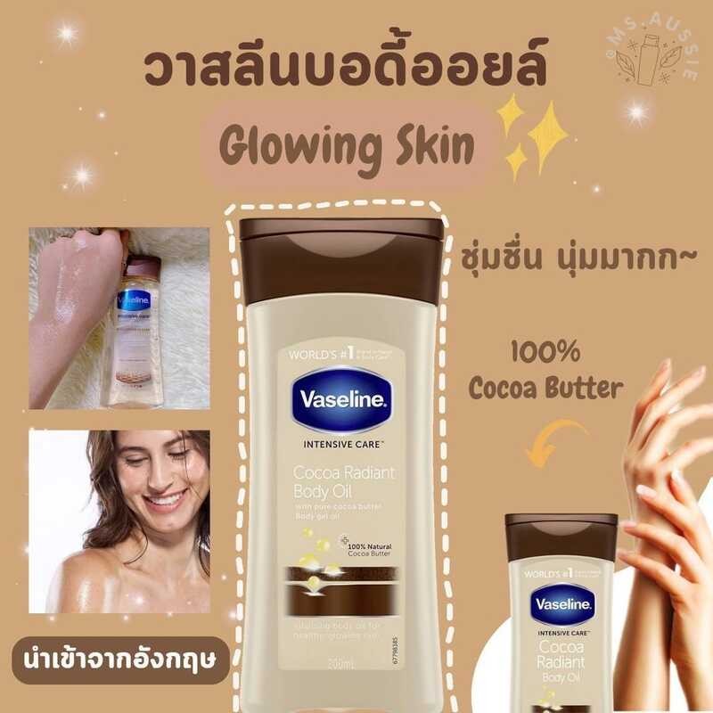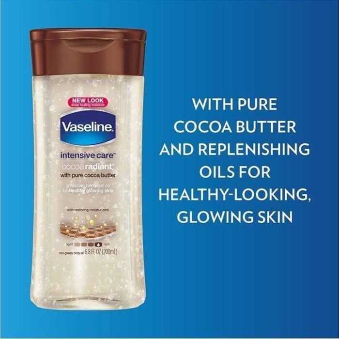 Skin Whitening Care✺Vaseline Intensive Care Cocoa Radiant Body Oil 200 Ml✨ Glowing and Radiant Skin