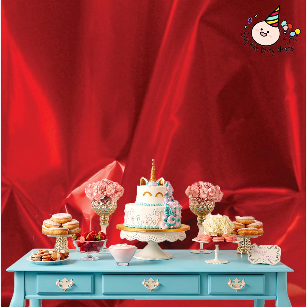 Red Shiny Metallic Foil Table Cover for Adult Teenage Birthday Party - Sophiapartyneeds