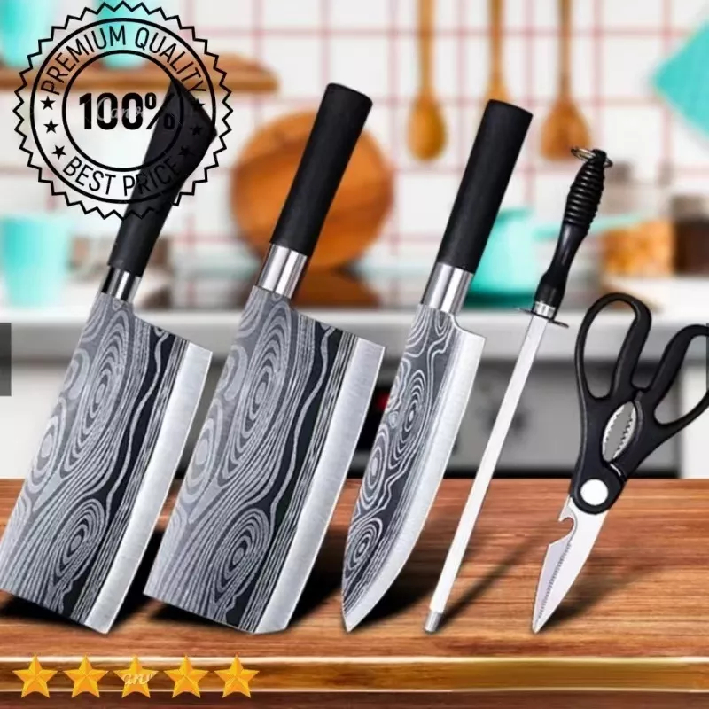 5 PCS Kitchen Tools Stainless Steel Multifunction Kitchen Knife With Chopping Board Set