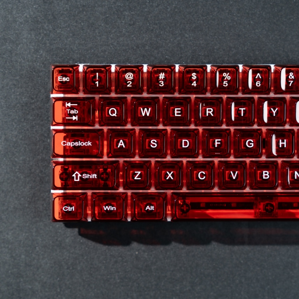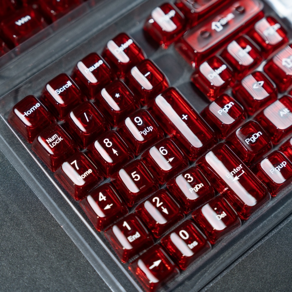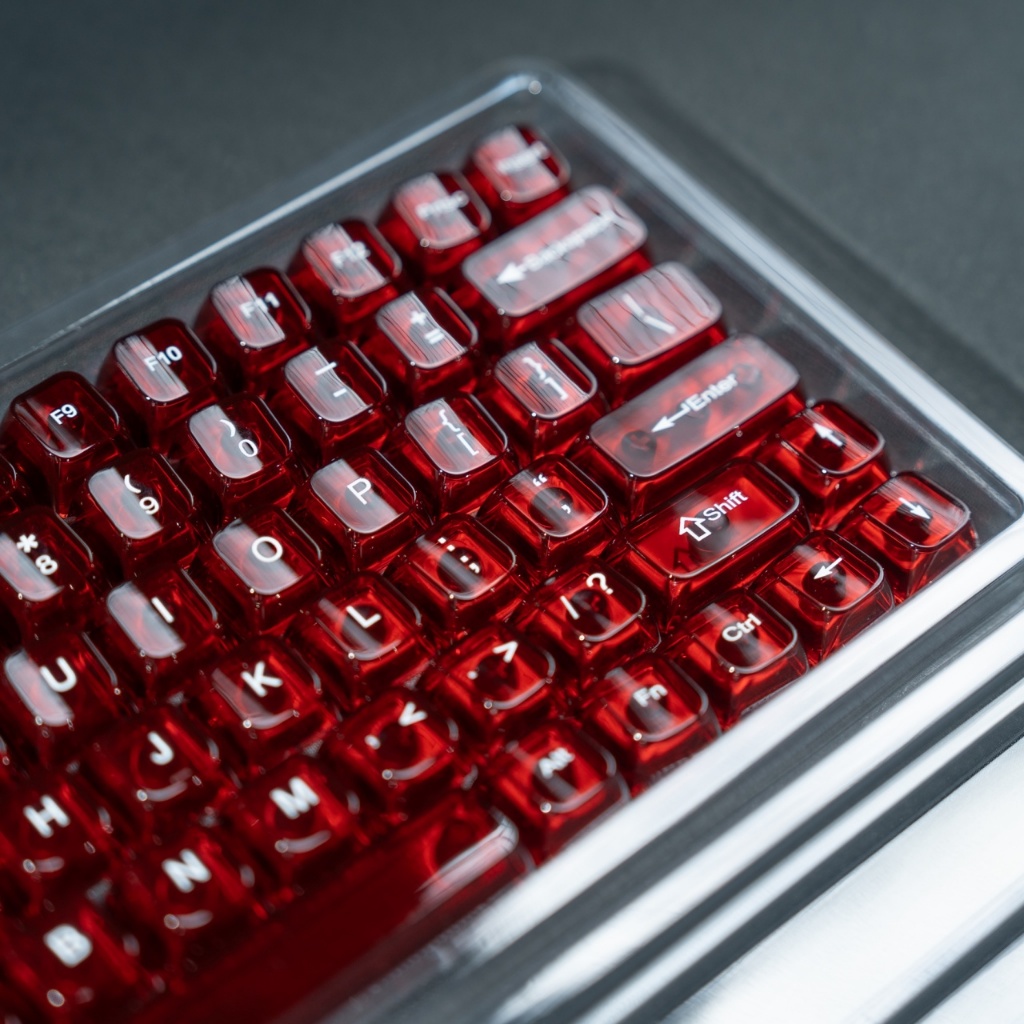 Red Transparent Keycaps Set 115 Keys MDA Profile Crystal Custom Keycaps for Cherry MX Switches Mechanical Keyboards