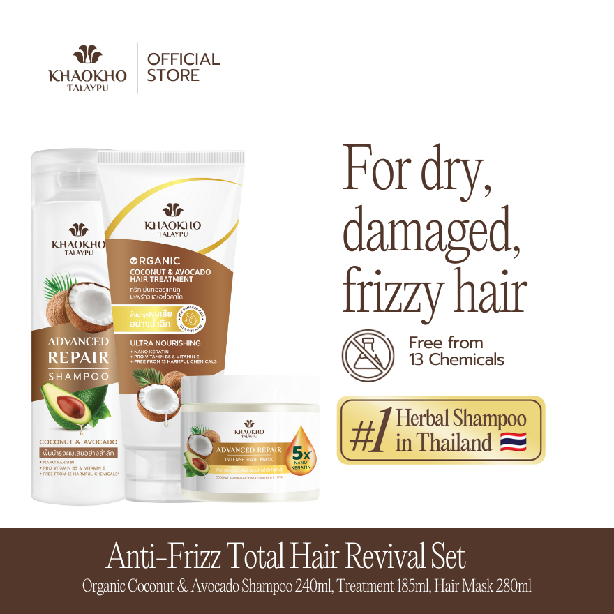 KHAOKHO TALAYPU Anti-Frizz Total Hair Revival Set [Coconut & Avocado, Frizzy, Damage Repair]