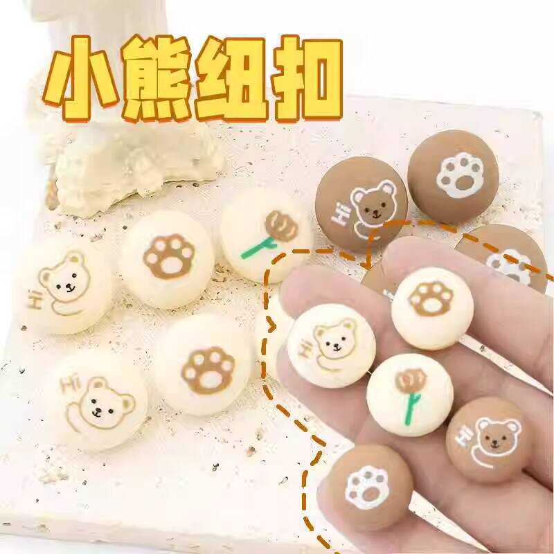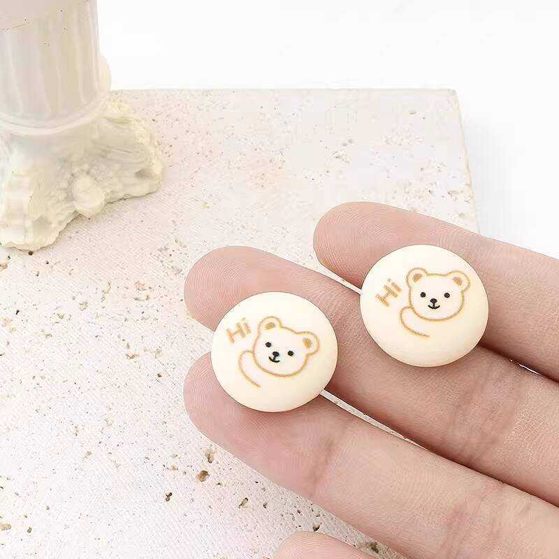 Biscuit Round Cartoon Bear Baby Button DIY Handmade Printing Cute
