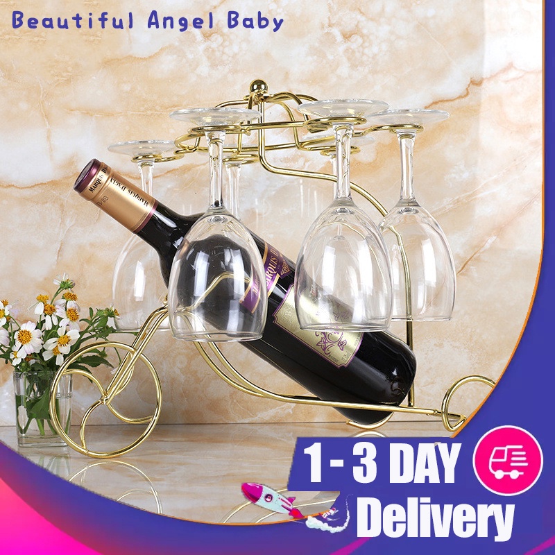 Red Wine Bottle Holder Creative Wine Bottle Rack Organizer Hanging Upside Down Cup Goblets Display