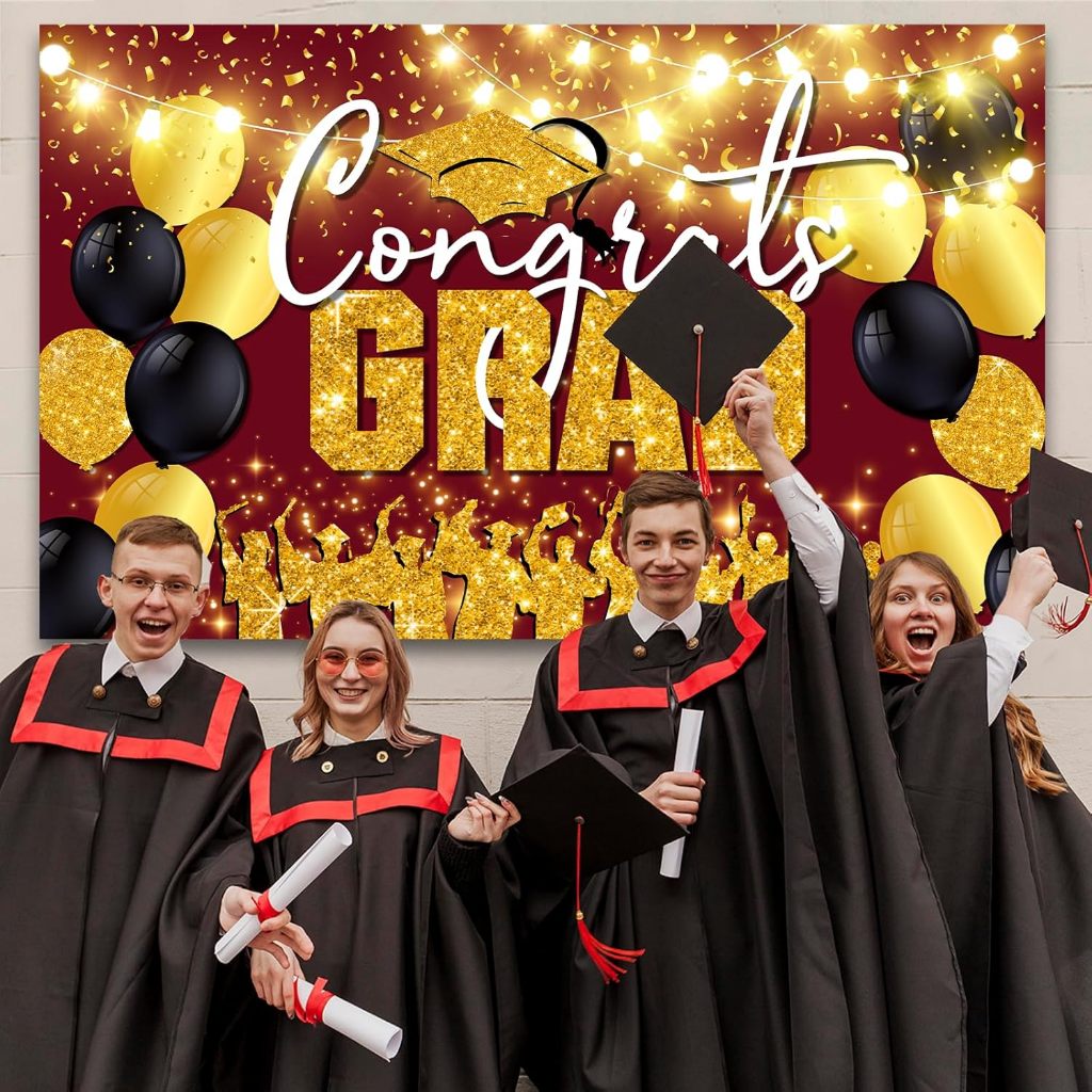 Red and Gold Class of 2025 Graduation Party Photography Backdrop Congrats Grad Backdrops Banner Large Sign Wall Decorations Photography Background Party Supplies