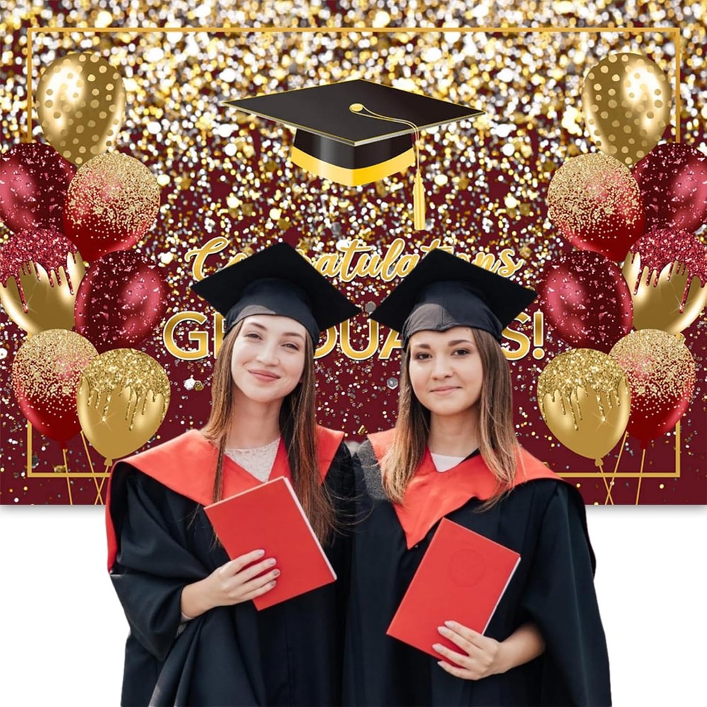 Red and Gold Graduation Photography Backdrop Burgundy and Gold Glitter Class of 2025 Congrats Grad Party Decorations Congratulations Graduates Background Party Photo Props