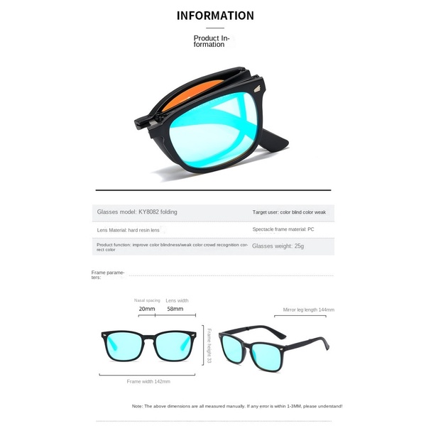 Red-green-blind color-weak glasses unisex folding portable viewing color correction special color-blind glasses
