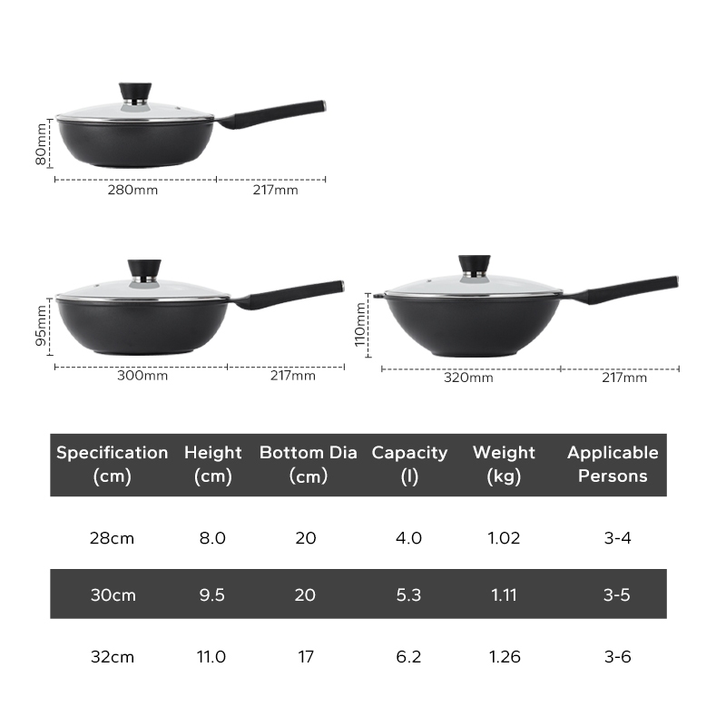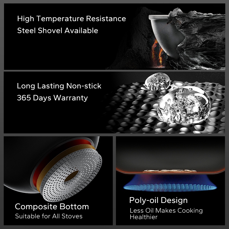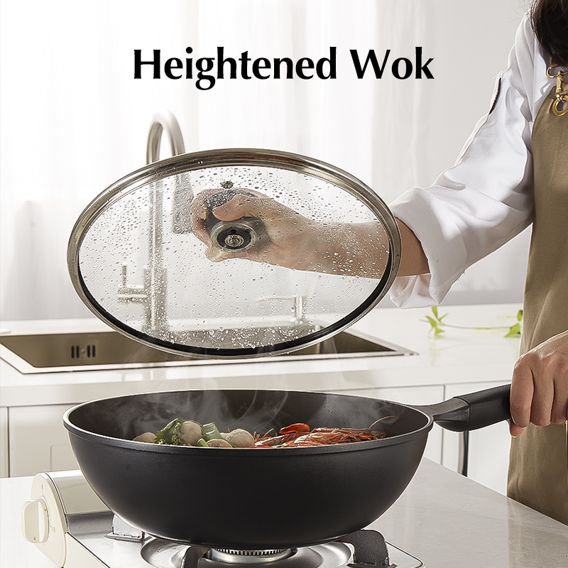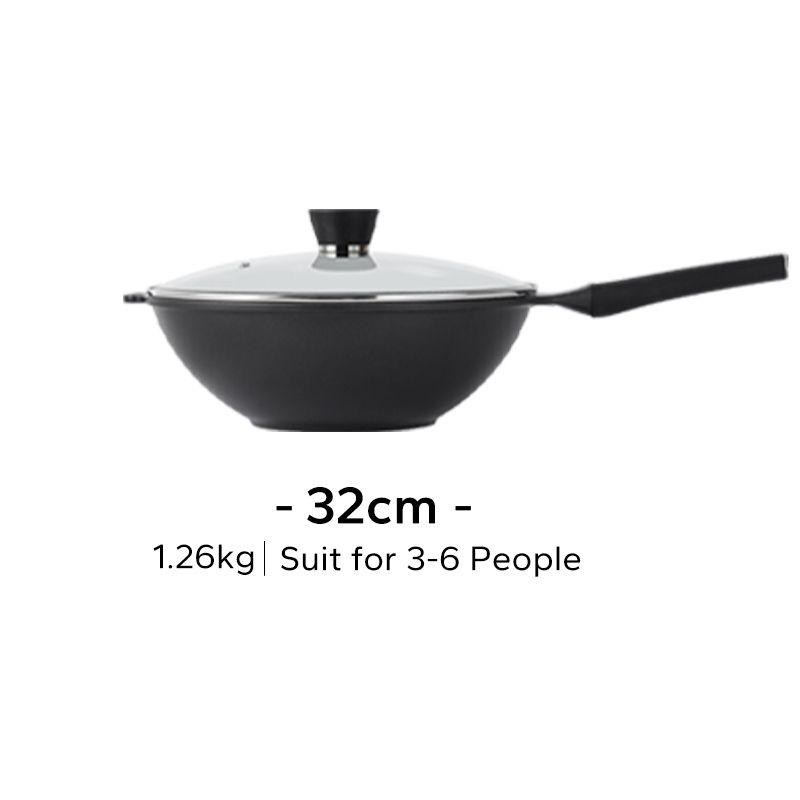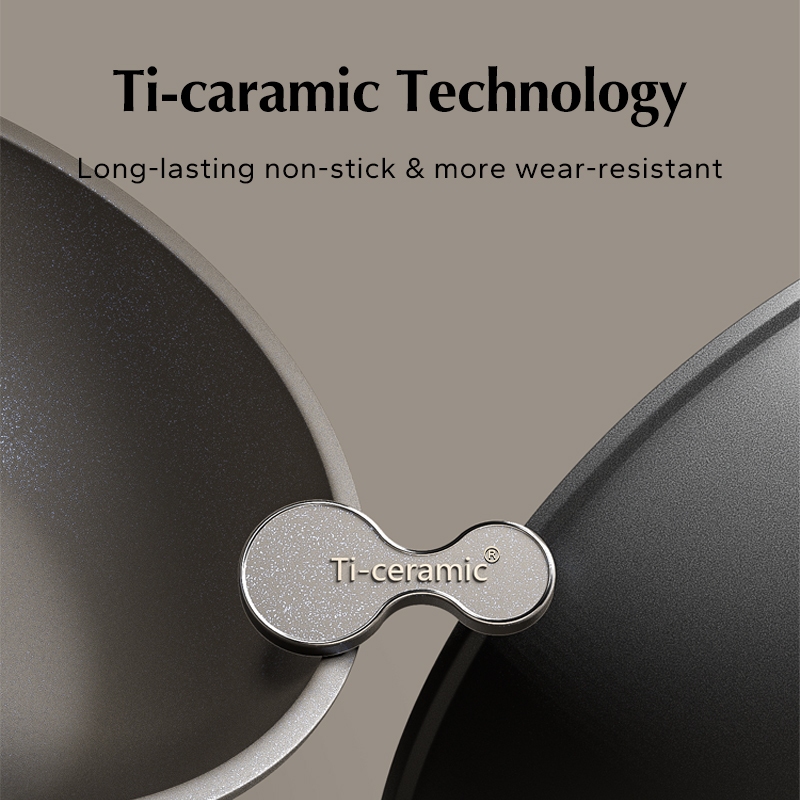 Redchef Black Nonstick Ti-Ceramic Wok Non Toxic PFAS& PTFE& PFOA Free Deep Frying Pan Suitable for All Stoves