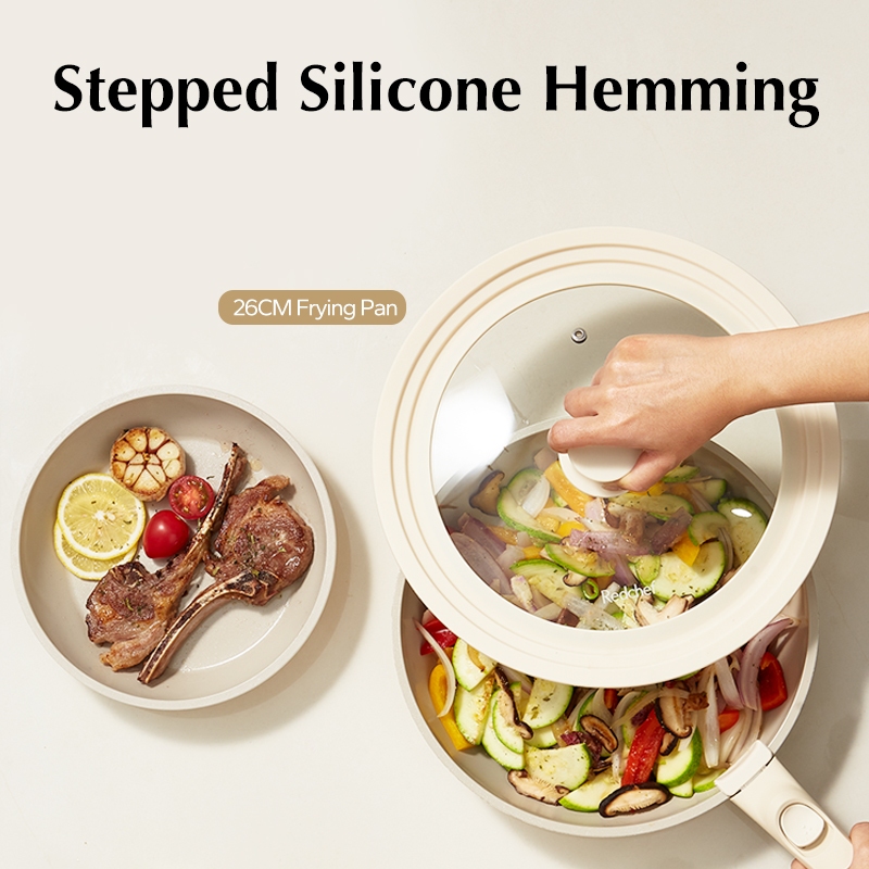 Redchef Multipurpose Silicone Glass Lid Cover With Knob Suitable For Wok & Casserole & Pot & Frying Pan 24-26-28CM