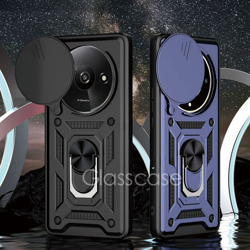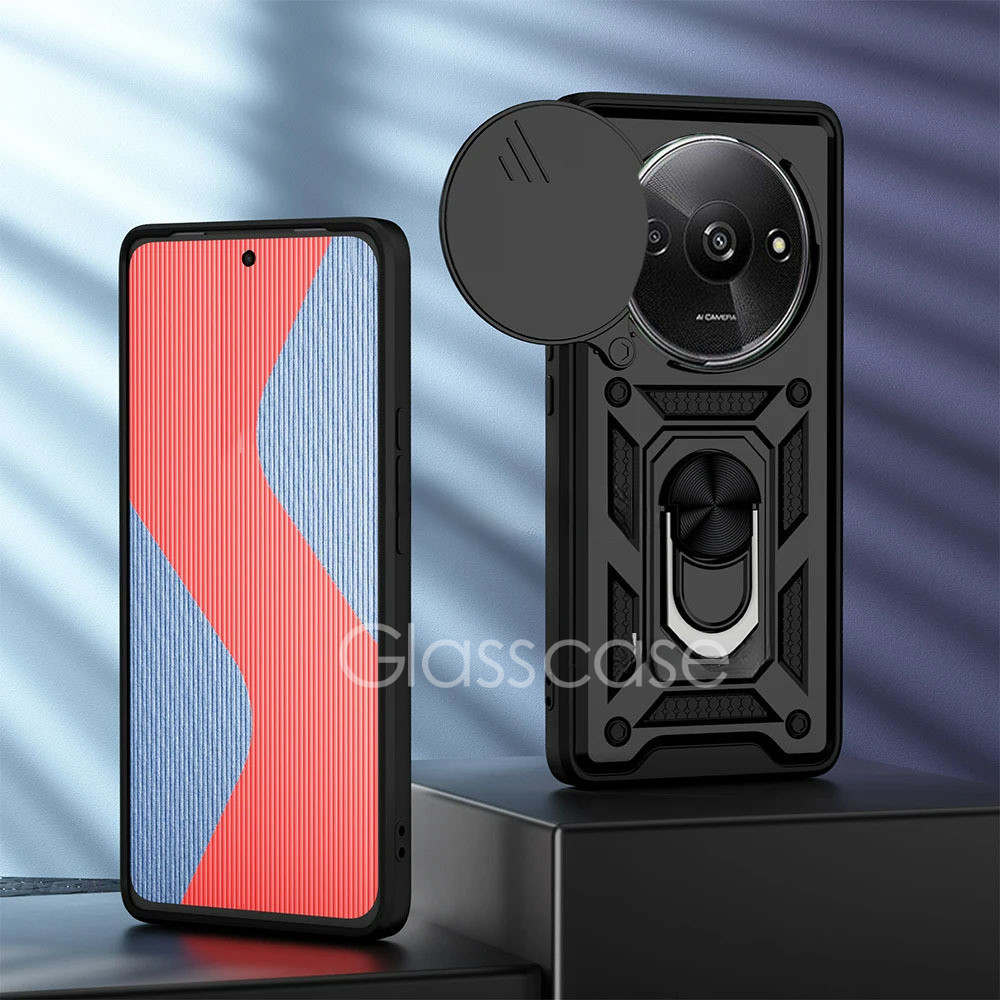 Redmi A3 Casing For Redmi A3 X Plus A3X A3Plus A3+ RedmiA3 RedmiA3X 2024 With Metal Armor Ring Phone Case Bracket Stent Push Camera Shockproof Protection Hard Back Casing Cover