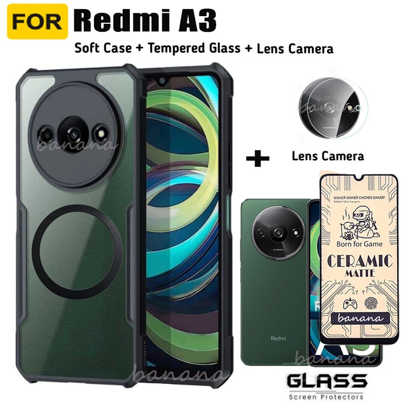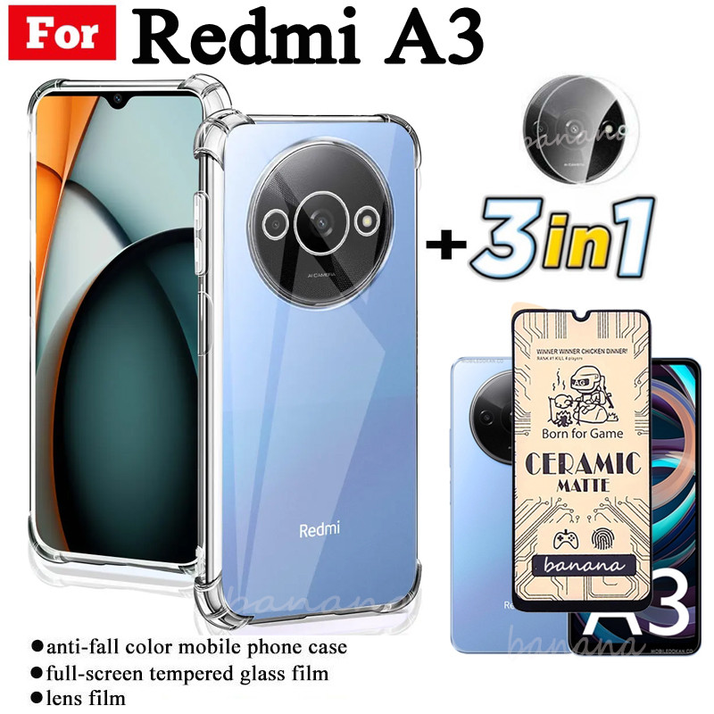 Redmi A3 Shockproof Phone Case for Redmi A3 A3X Anti Spy Privacy Full Coverage Tempered Glass Screen Protector and Lens Film