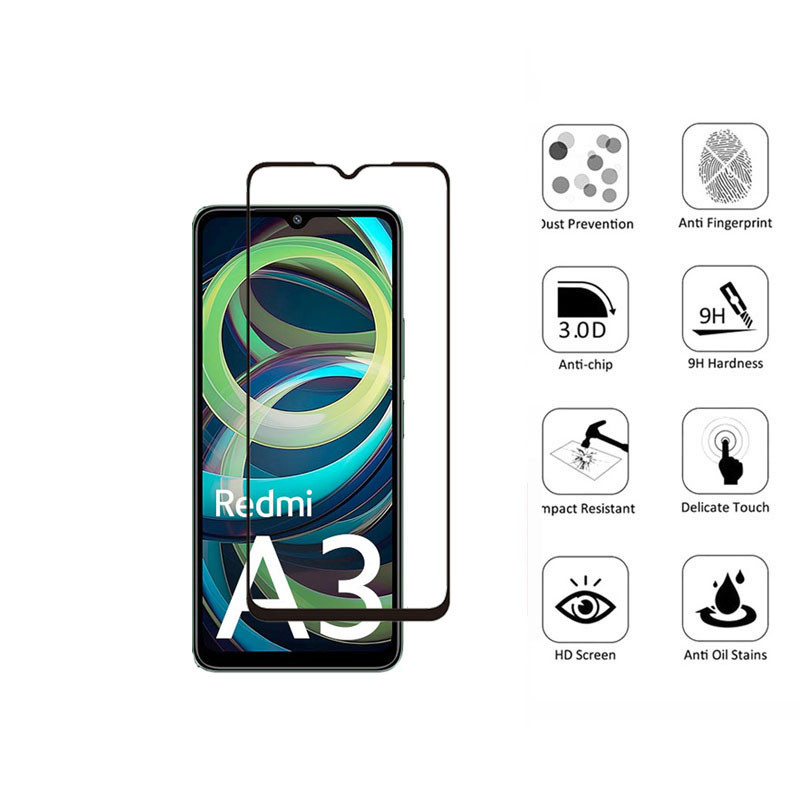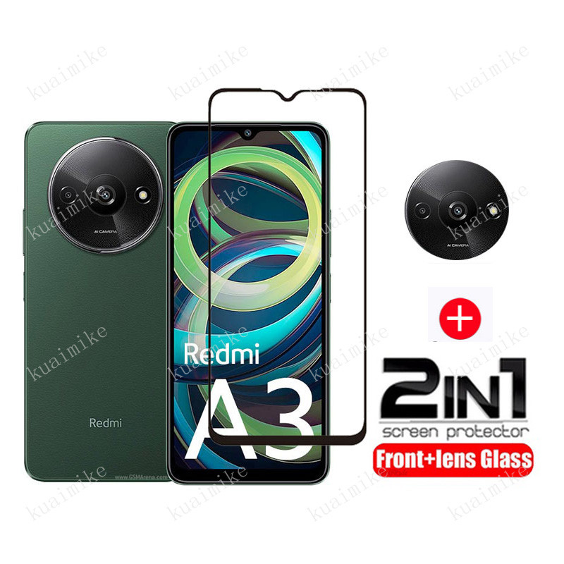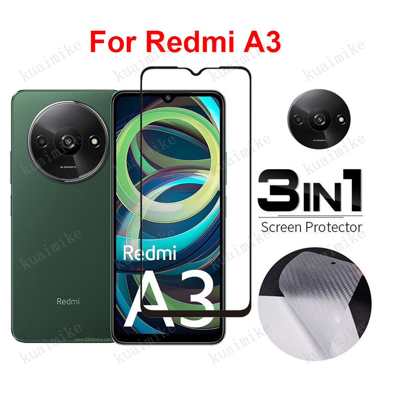 Redmi A3 Tempered Glass 3 in 1 Screen Protector for Redmi A2 A1 Plus 14C 13C 12 12C 10C 10 Note 13 Pro+ 12s 11s Back Carbon Screen Protector Film With Camera Lens Glass Protector