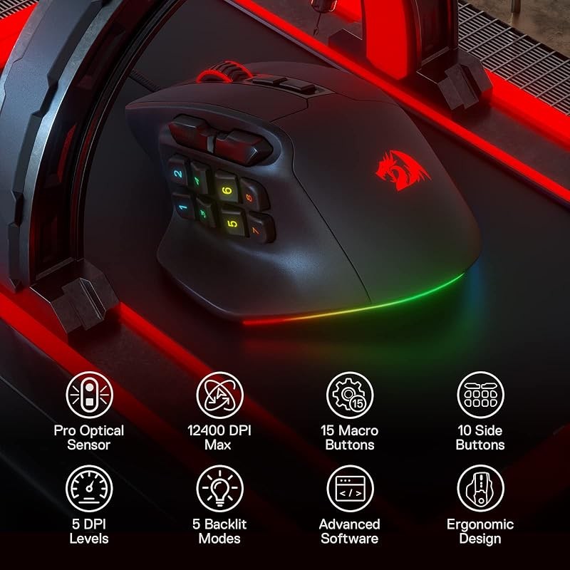 Redragon M811 Aatrox MMO Gaming Mouse 15 Buttons Wired RGB Ergonomic【Direct from Japan】